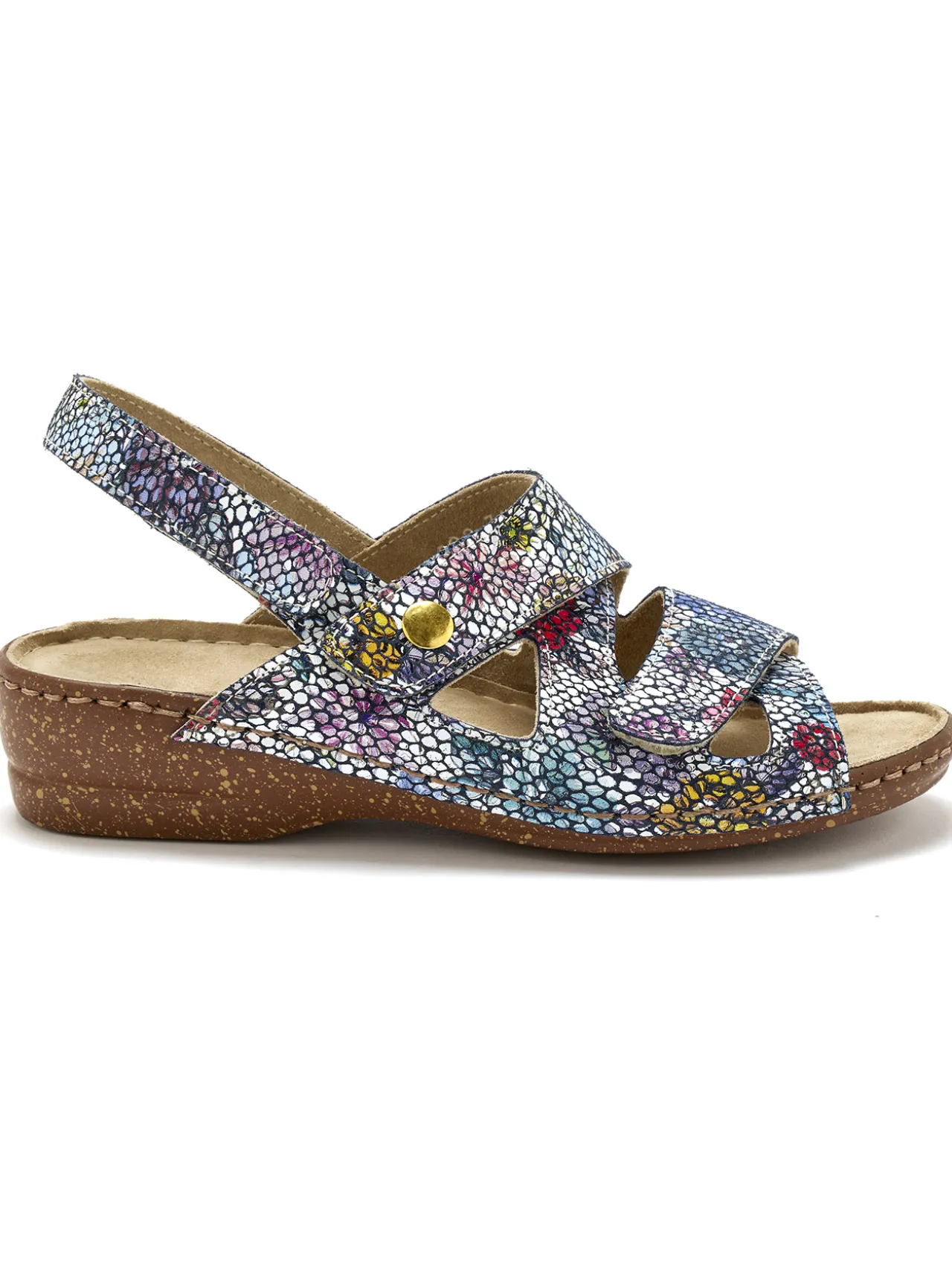 Extra larges, ces sandales à scratch apportent plus de volume intérieur pour les pieds les plus sensibles qui ne sont plus soumis aux compressions douloureuses