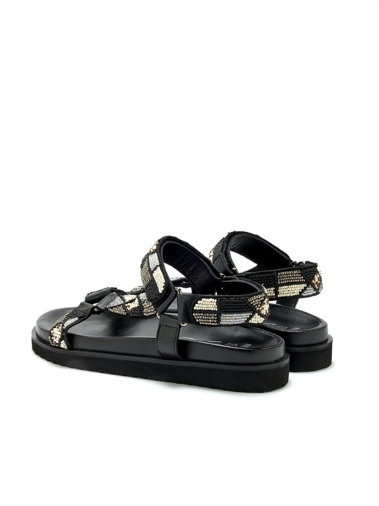 Toute l’originalité et le style de ces sandales en cuir s’exprime au travers de ses perles fantaisie : un détail qui en fait de petites pépites du dressing estival. Côté confort et praticité, ces sandales noires sont munies de 3 pattes scratch, pour une adaptation sur mesure au pied !