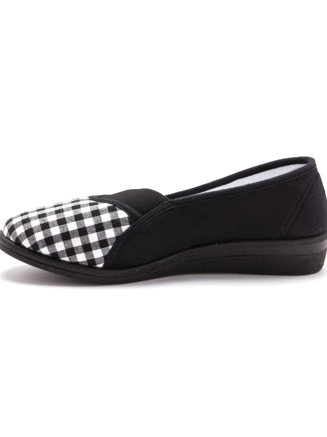 – Talon des pantoufles en toile femme : 2,5 cm environ