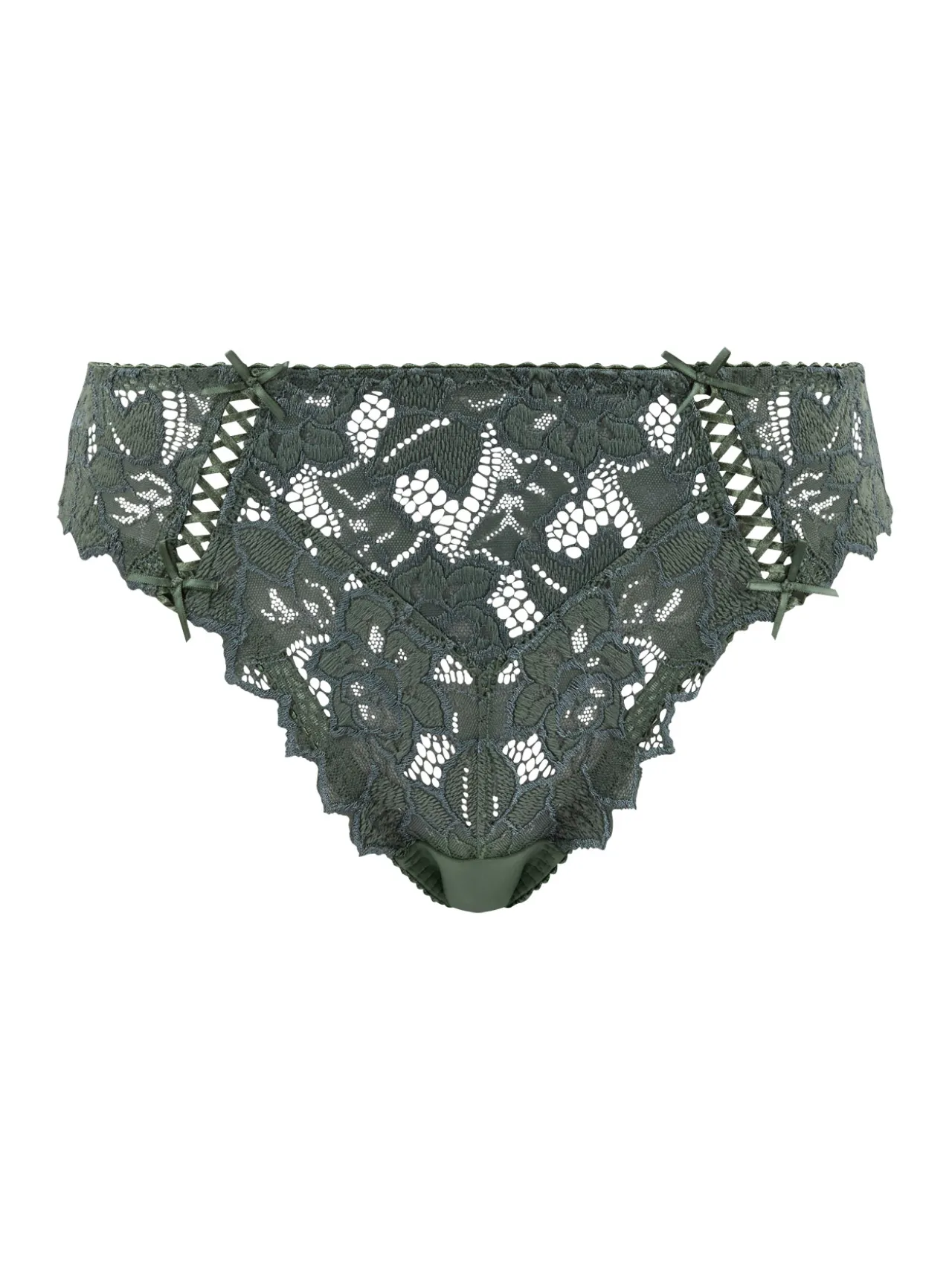 – A l’avant du slip, les laçages, les petits noeuds et les bordures en écailles apportent une touche de fantaisie