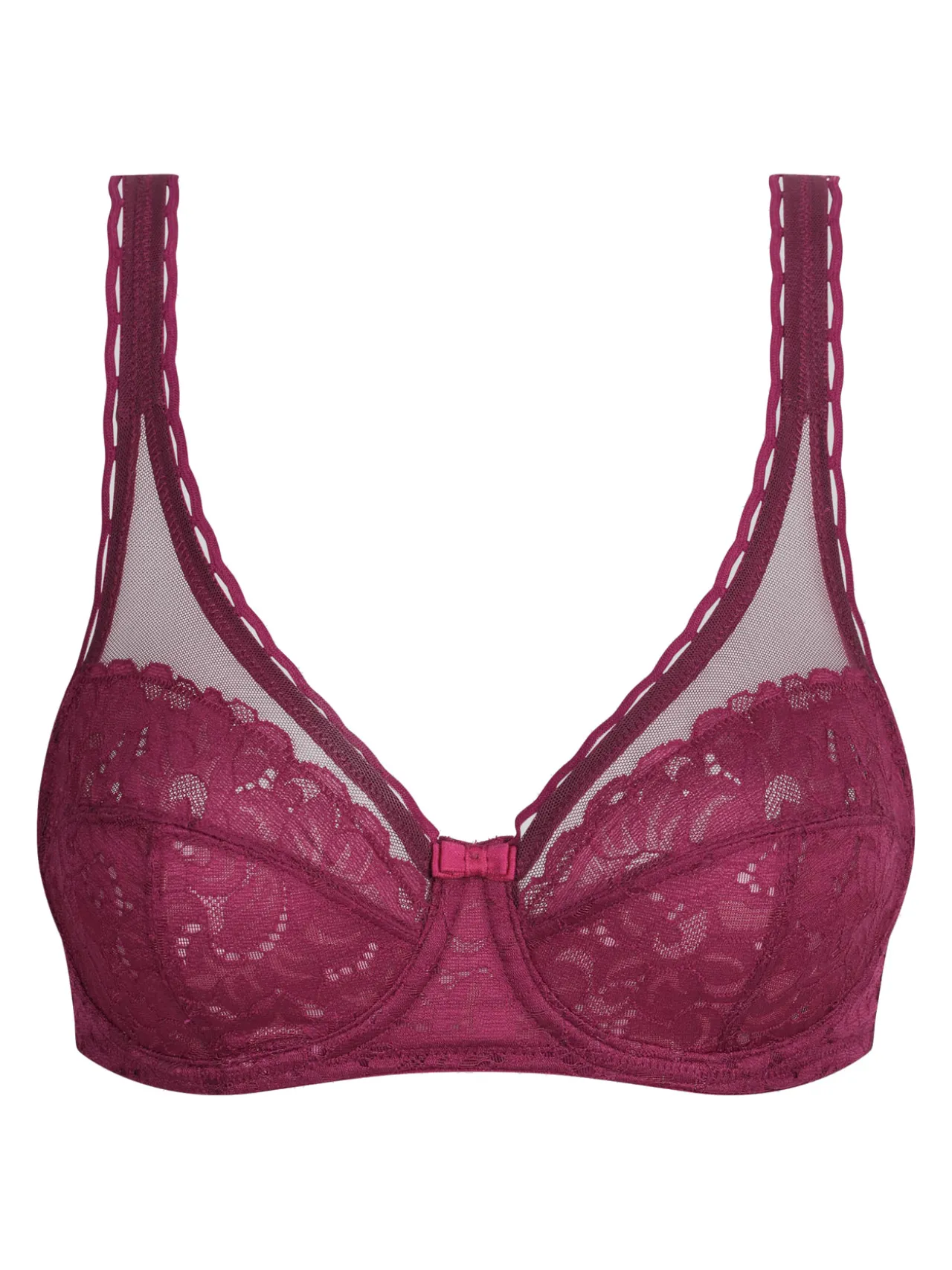 Avec sa dentelle florale dans le haut des bonnets 3 parties, sa maille et sa microfibre recyclées, le soutien-gorge « Coeur Croisé Féminin recyclé » de PLAYTEX®, avec armatures. joue avec succès la carte de l’éco-responsabilité.