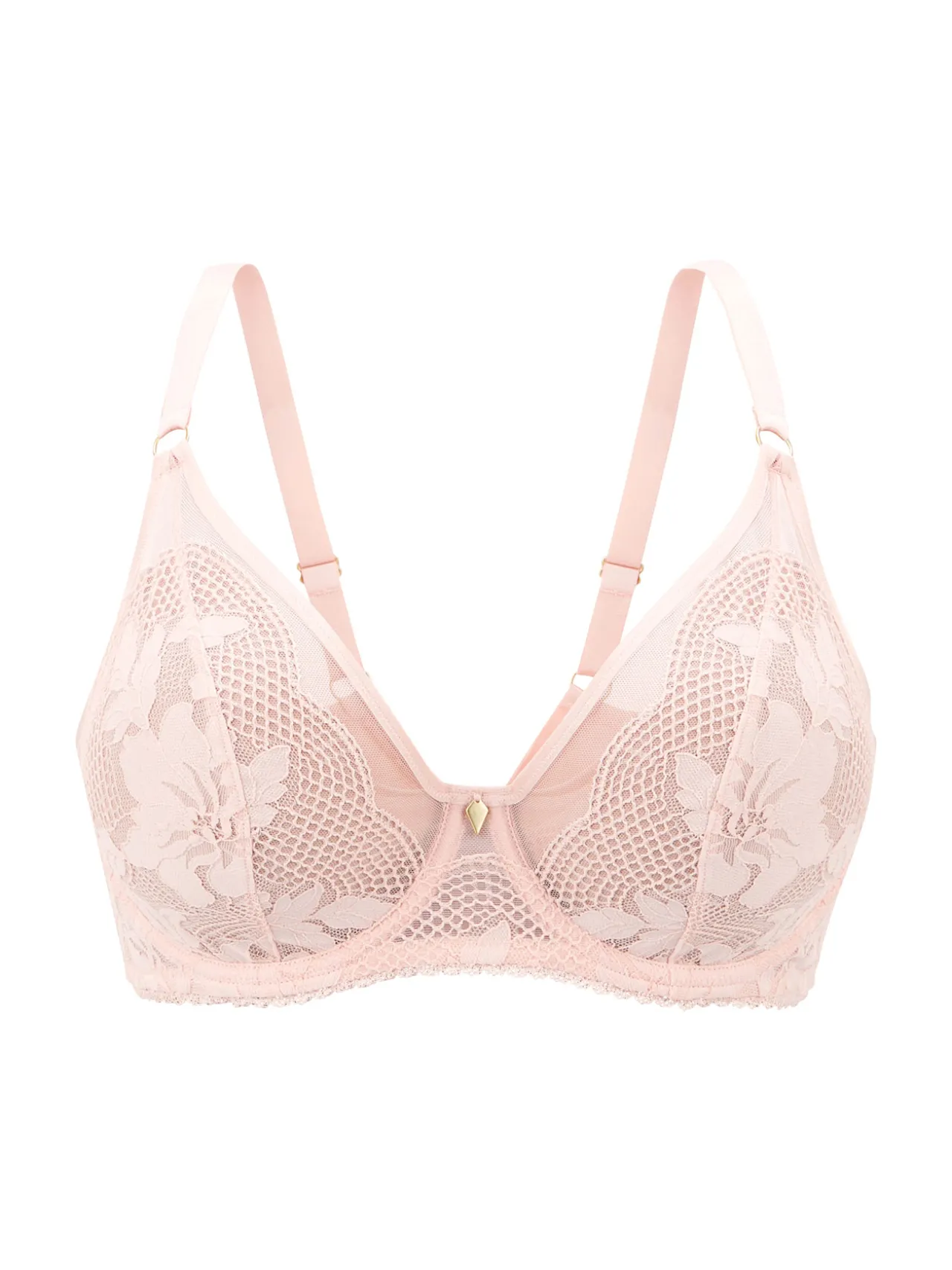 Ce soutien-gorge avec armatures SANS COMPLEXE se compose d’un mélange entre une délicate dentelle au motif floral et résille, et un tulle transparent en bordure pour un côté chic et séduisant.
