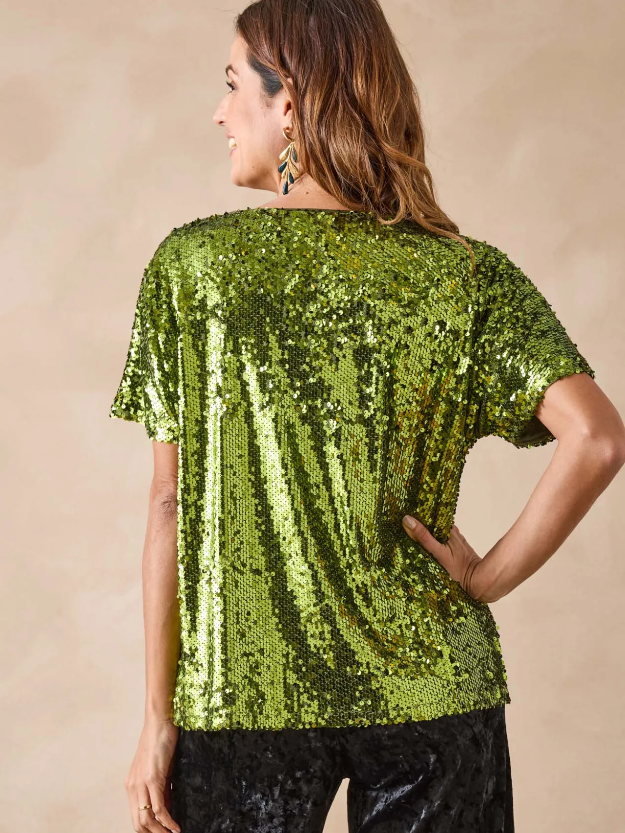 Sa coupe droite et ses manches courtes en font un vêtement facile à porter. Associez ce top à sequins à un pantalon ajusté, une jupe midi ou un tailleur. Parfait pour un cocktail, une soirée ou un événement spécial.