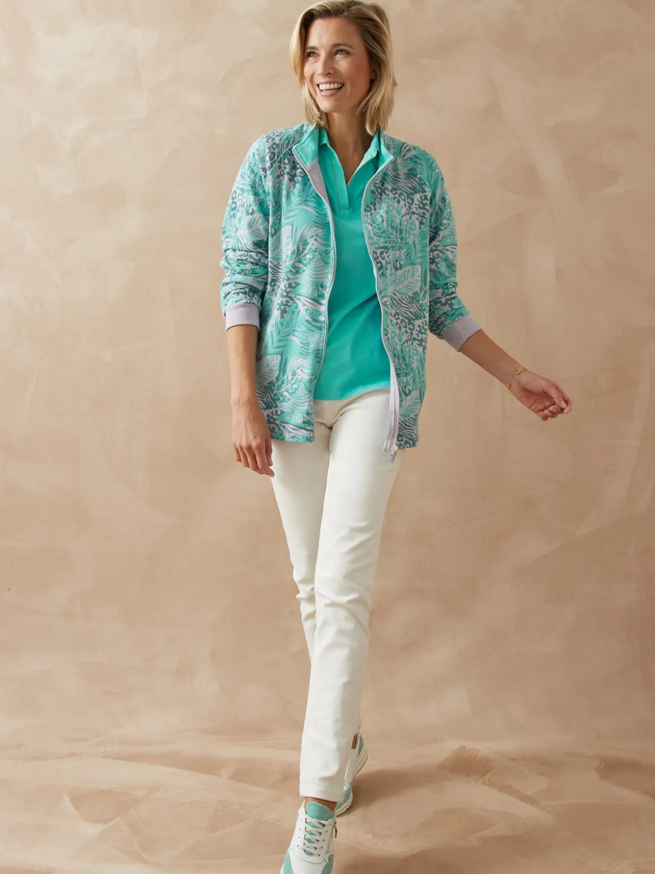 L’indispensable polo manches courtes se distingue par de jolis petits détails strassés et une finition passepoil très soignée.