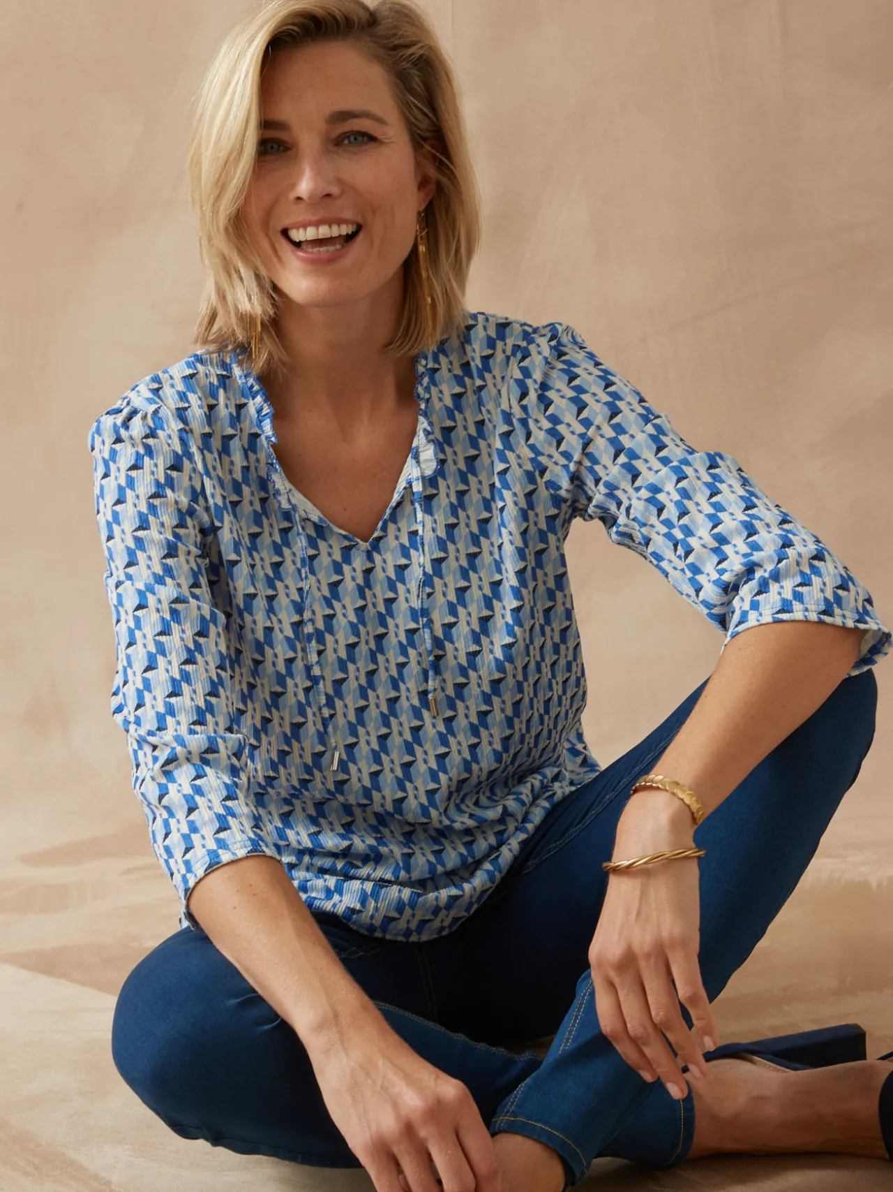 Un style chic comme une blouse, un col volanté ultra féminin et une maille gaufrée fantaisie… On se laisse tenter par ce tès joli tee-shirt imprimé.