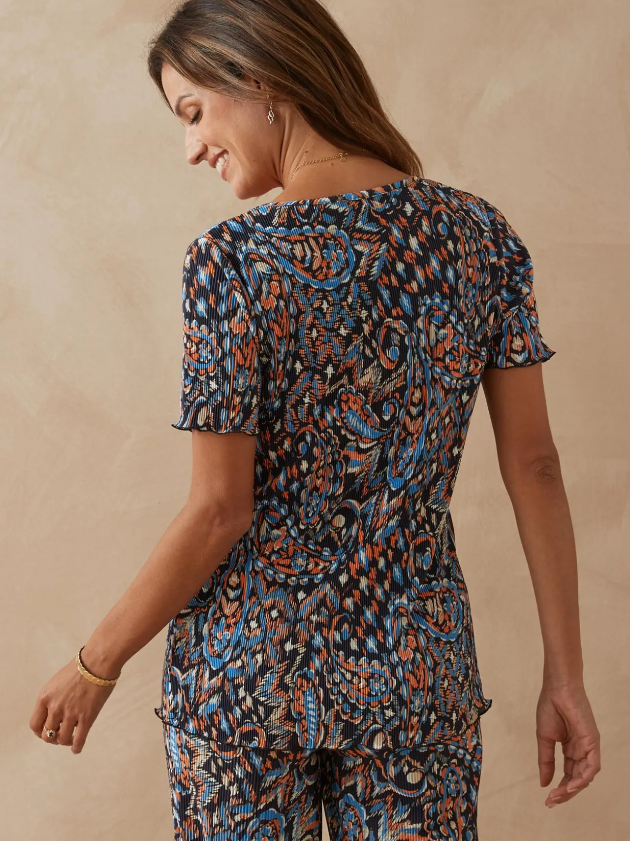 Exactement le style de T-shirt léger que l’on aime porter dès qu’il fait beau ! Son plissé permanent est aussi stylée que pratique : vite lavé, vite séché et pas de repassage :