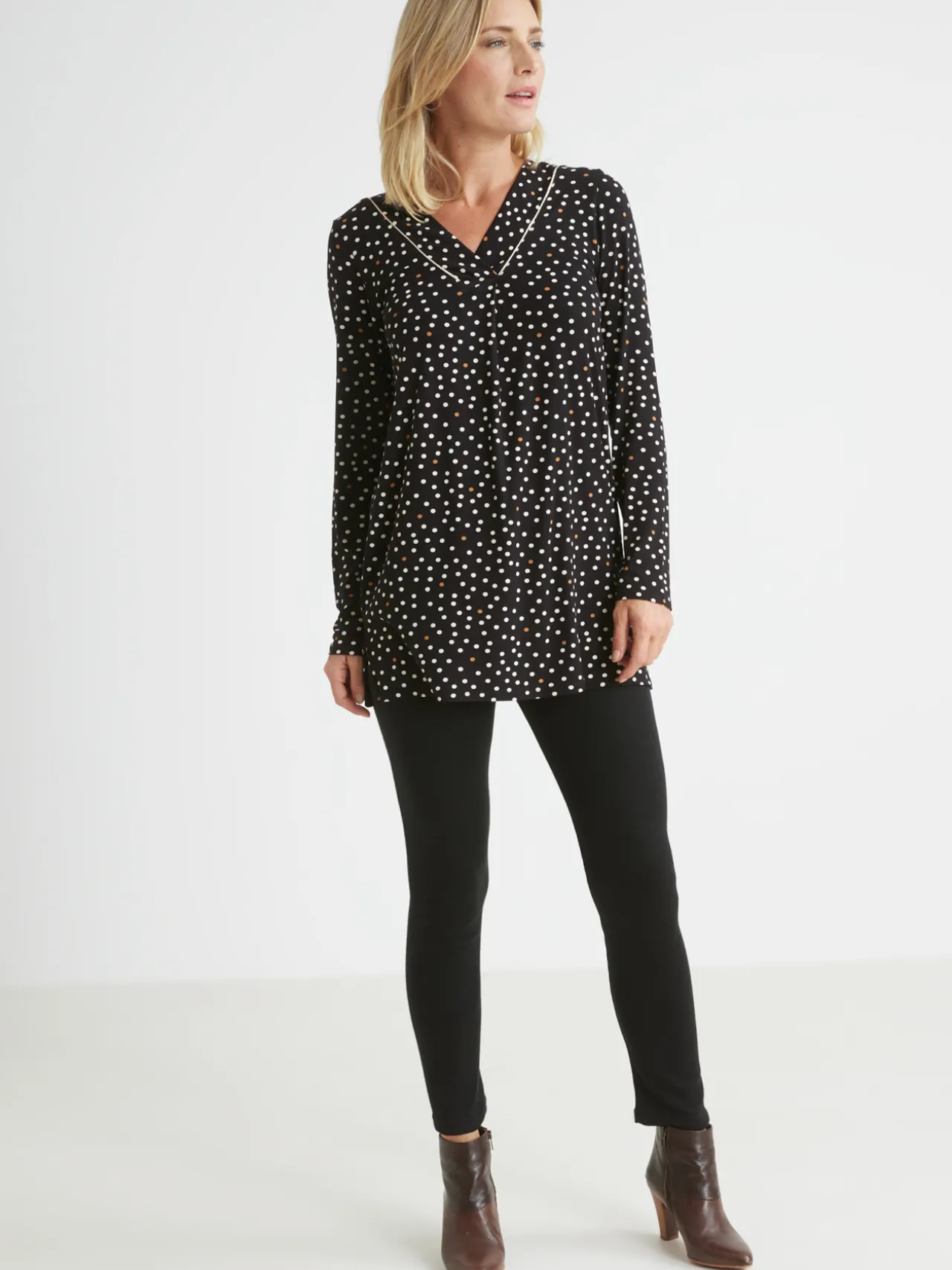 Un imprimé tendance bohème chic, une forme flatteuse et une jolie finition à l’encolure, ce tee-shirt tunique s’impose avec style dans notre nouvelle collection.