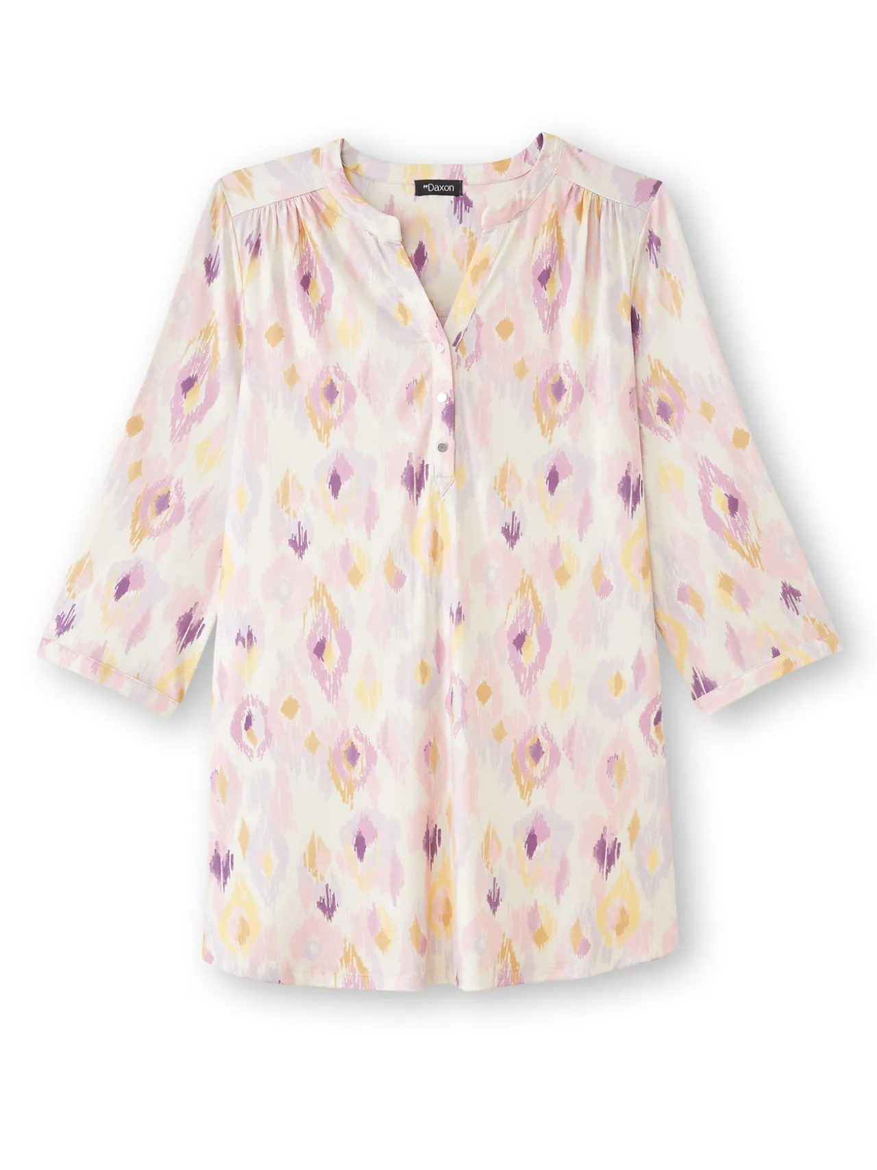 Le confort d’une maille extensible et la fantaisie d’un imprimé aux jolies nuances : le combo parfait pour faire de ce chemisier tunique une pièce chouchou du dressing. Vous la coordonnerez avec la jupe assortie, elle sera parfaite aussi sur un legging ou un pantalon grâce à sa base arrondie.