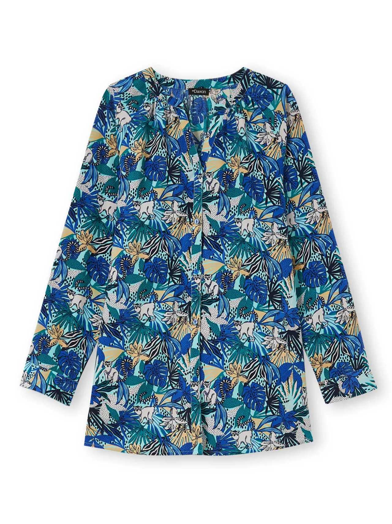 Une coupe ample confortable pour cette tunique boutonnée qui se porte facilement sur un tregging ou un slim pour un look actuel. Son imprimé met du pep’s dans la saison… on se laisse tenter !