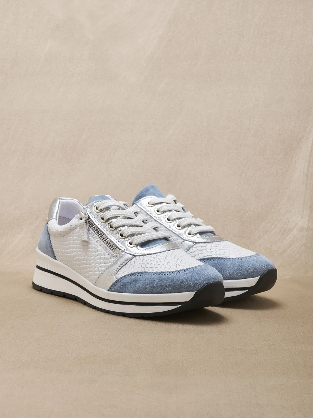 Largeur confort pour ces baskets zippées femme, une largeur adaptée aux pieds exigeants souhaitant un confort supérieur.
