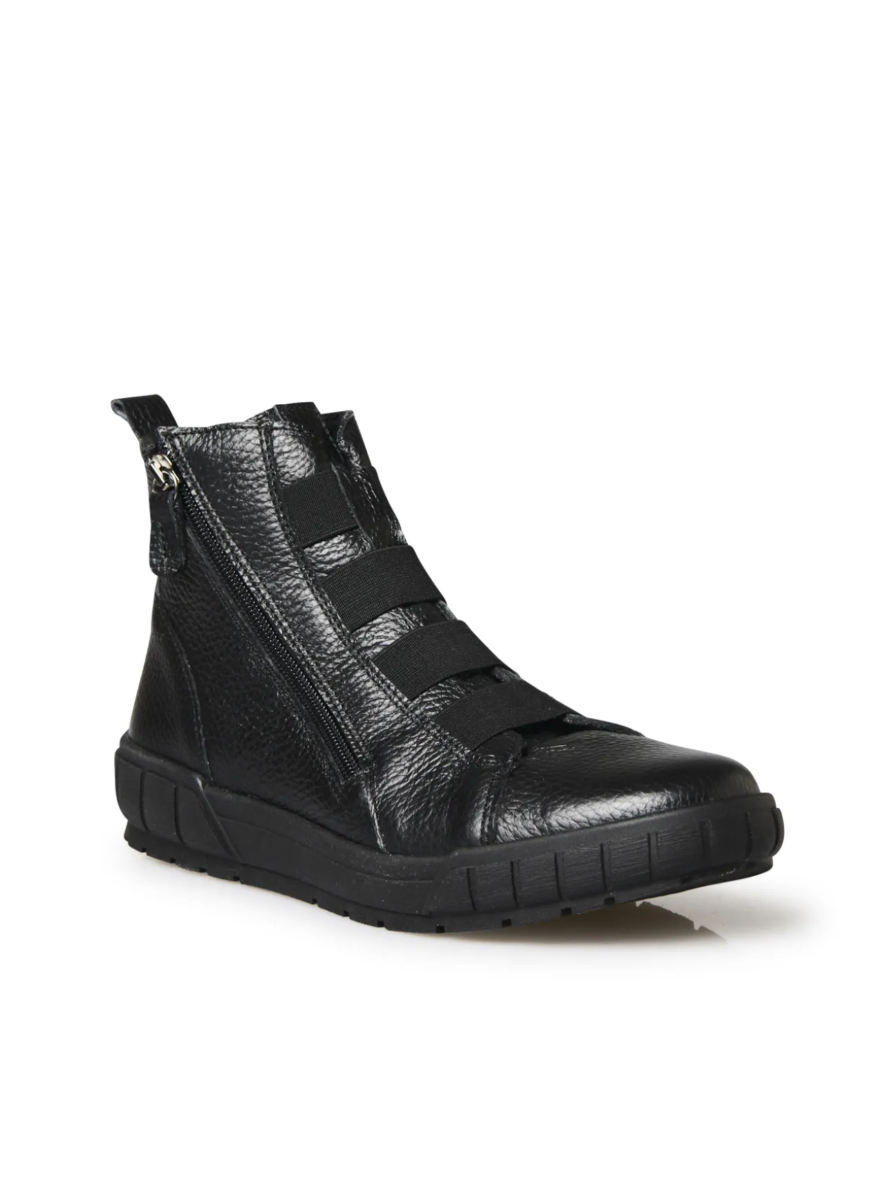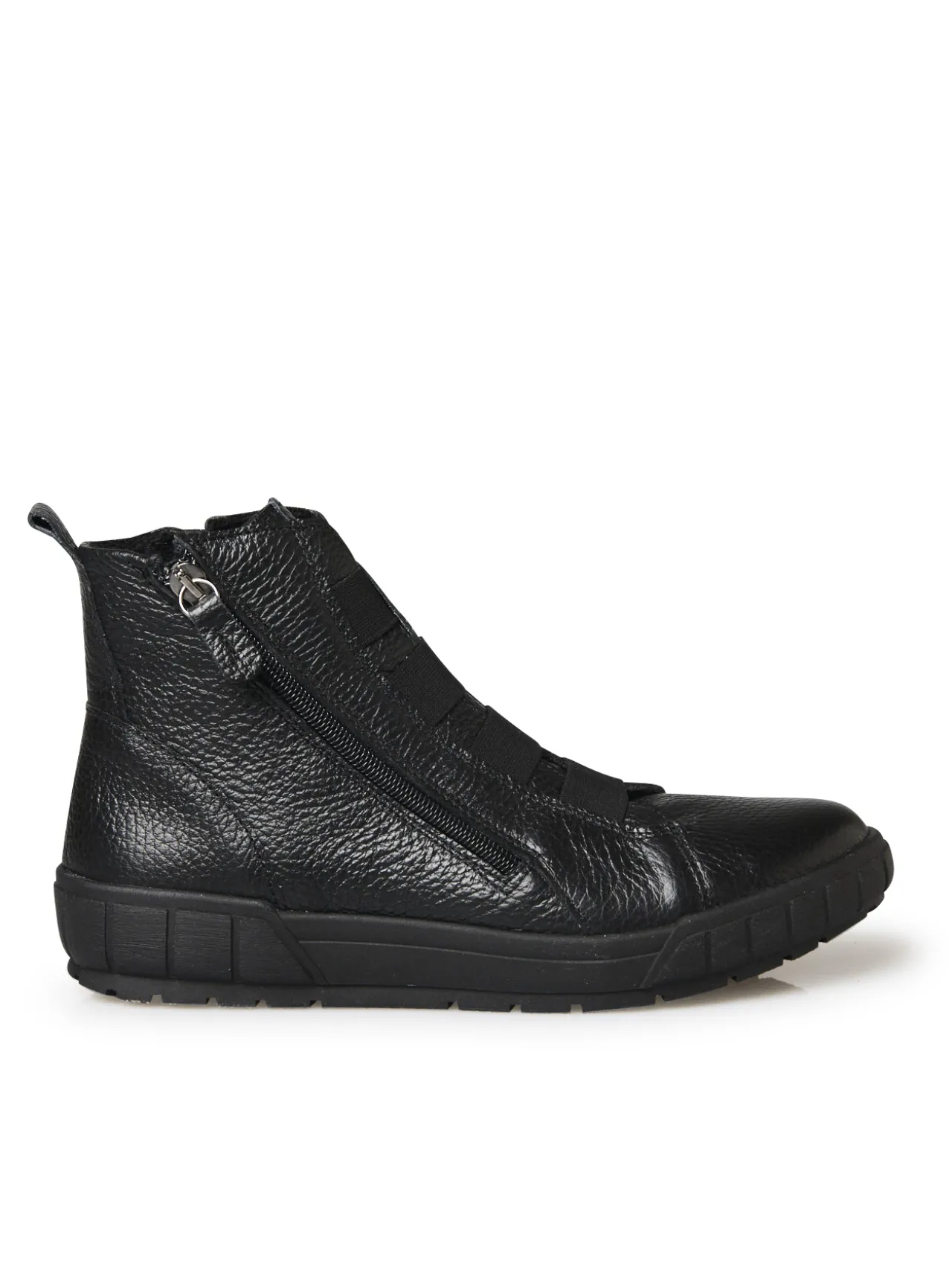 Un jeu de 4 élastiques sur le dessus de ces baskets montantes noires PEDICONFORT® apporte de l’aisance et permet de faire face aux petites variations de volume du pied au cours de la journée. 2 zips côtés vous permet de les enfiler et de les retirer facilement.