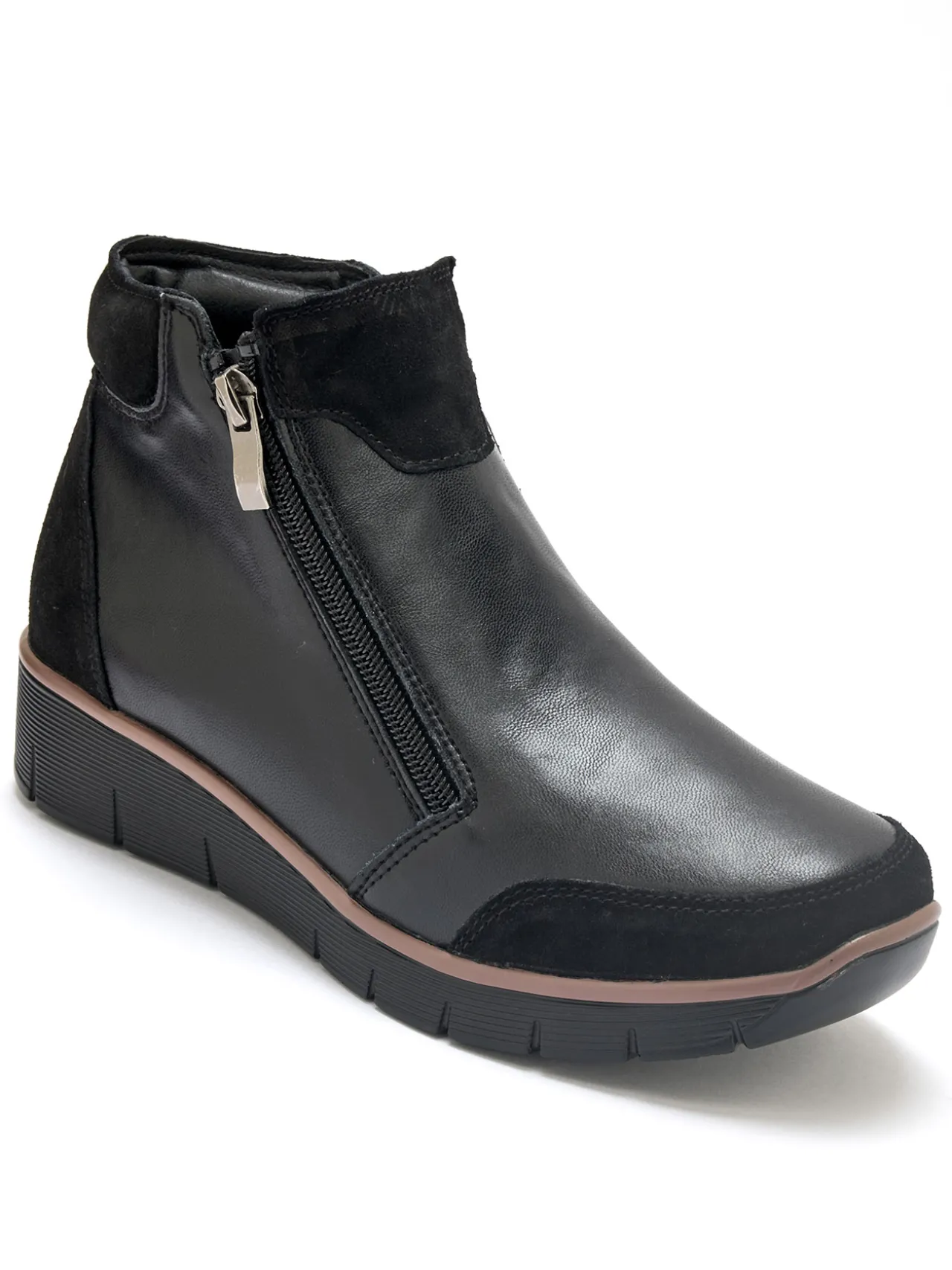 Avec leurs détails cuir velours et leur semelle compensée crantée, ces boots PEDICONFORT® conjuguent style, confort et modernité. L’astuce pratique : le double zip qui vous permettent de les enfiler en un clin d’oeil !