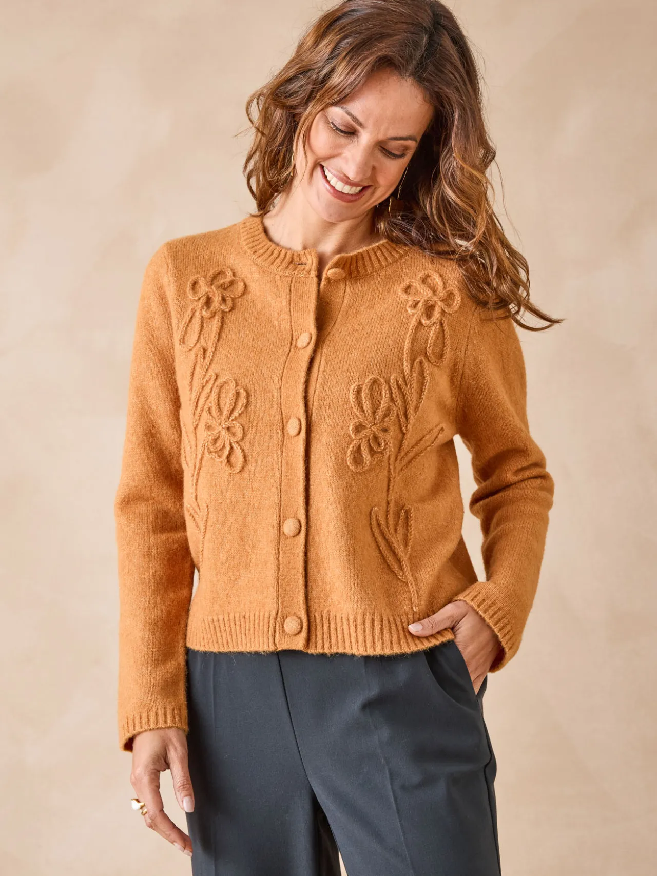 L’association alpaga et laine fait de ce cardigan un tricot bien chaud et très agréable à porter. Il affiche aussi de jolies applications Cornely qui affirment son élégance et son style !