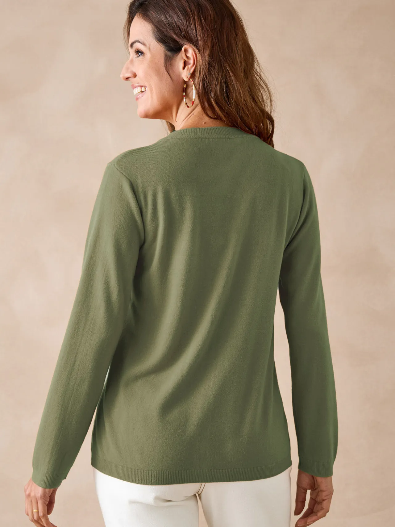 Ce gilet col rond femme est conçu pour s’adapter à toutes les morphologies : petites et grandes tailles.