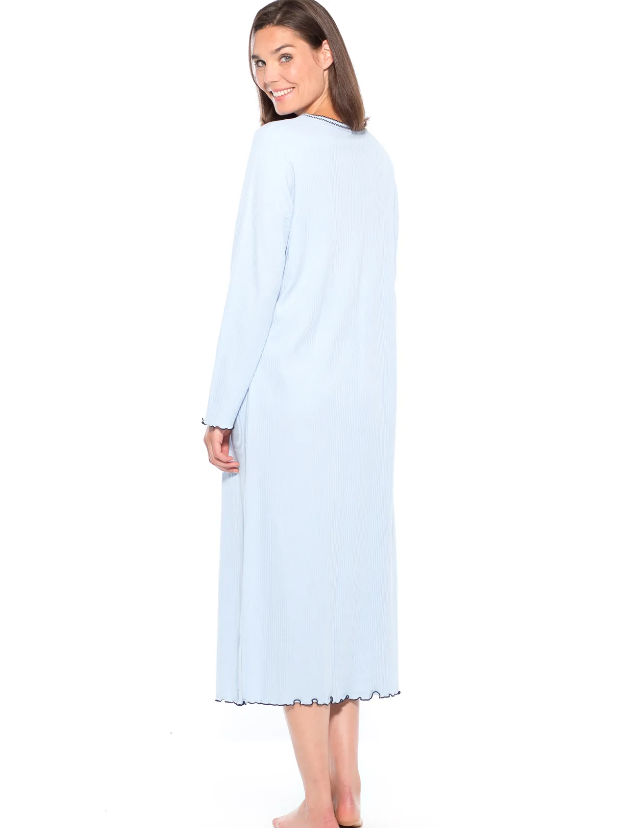 Douceur extrême au rendez-vous avec cette chemise de nuit longue, manches longues en maille interlock…