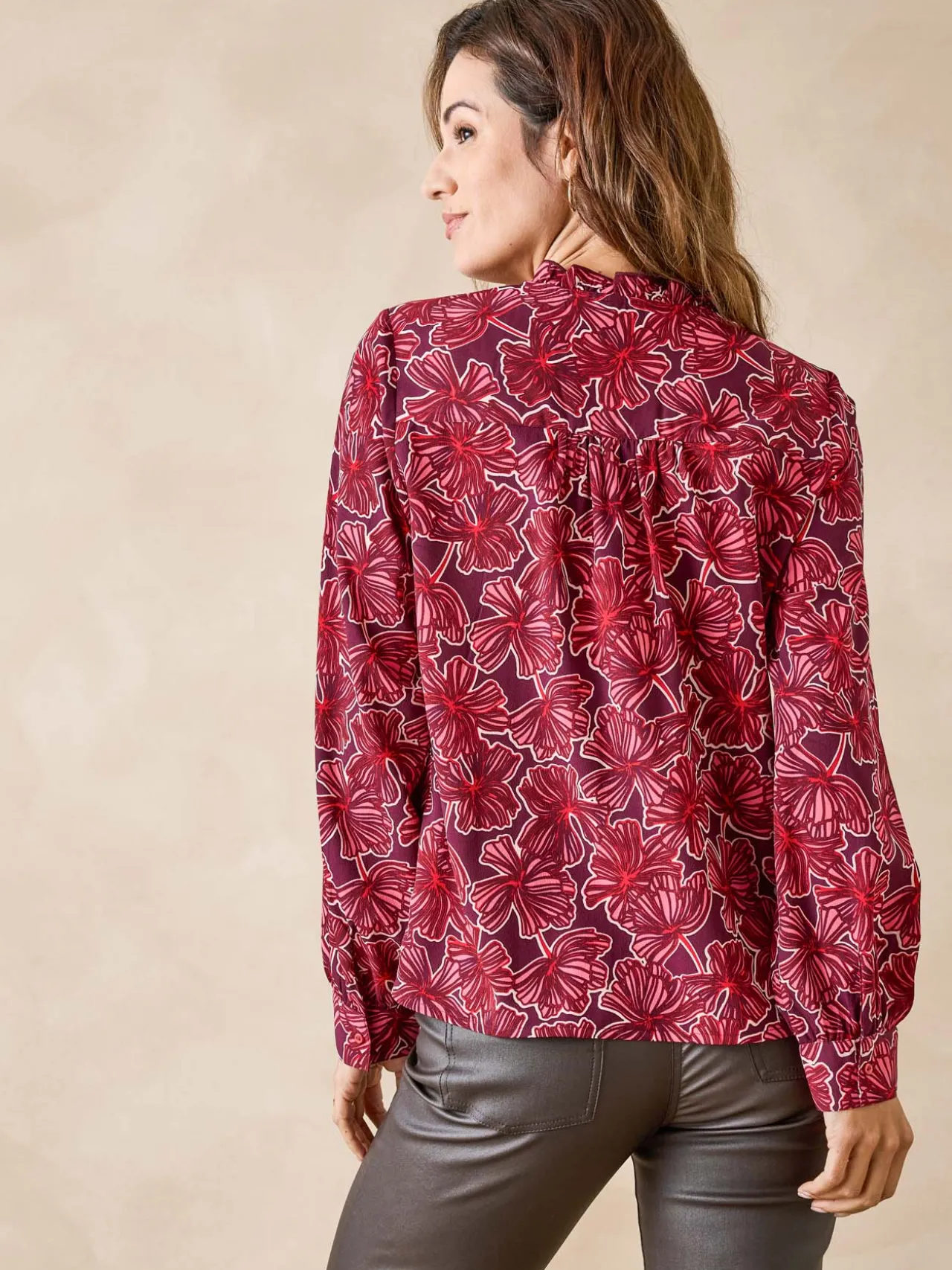 Ce chemisier manches longues est conçu pour s’adapter à toutes les morphologies : petites et grandes tailles.
