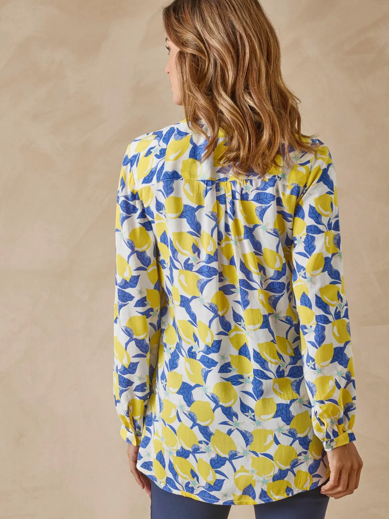 Un chemisier tunique imprimé, à porter ceinturé ou non. Son tissu viscose est agrablement fluide. Un chemisier long à ajouter à la shopping-liste !