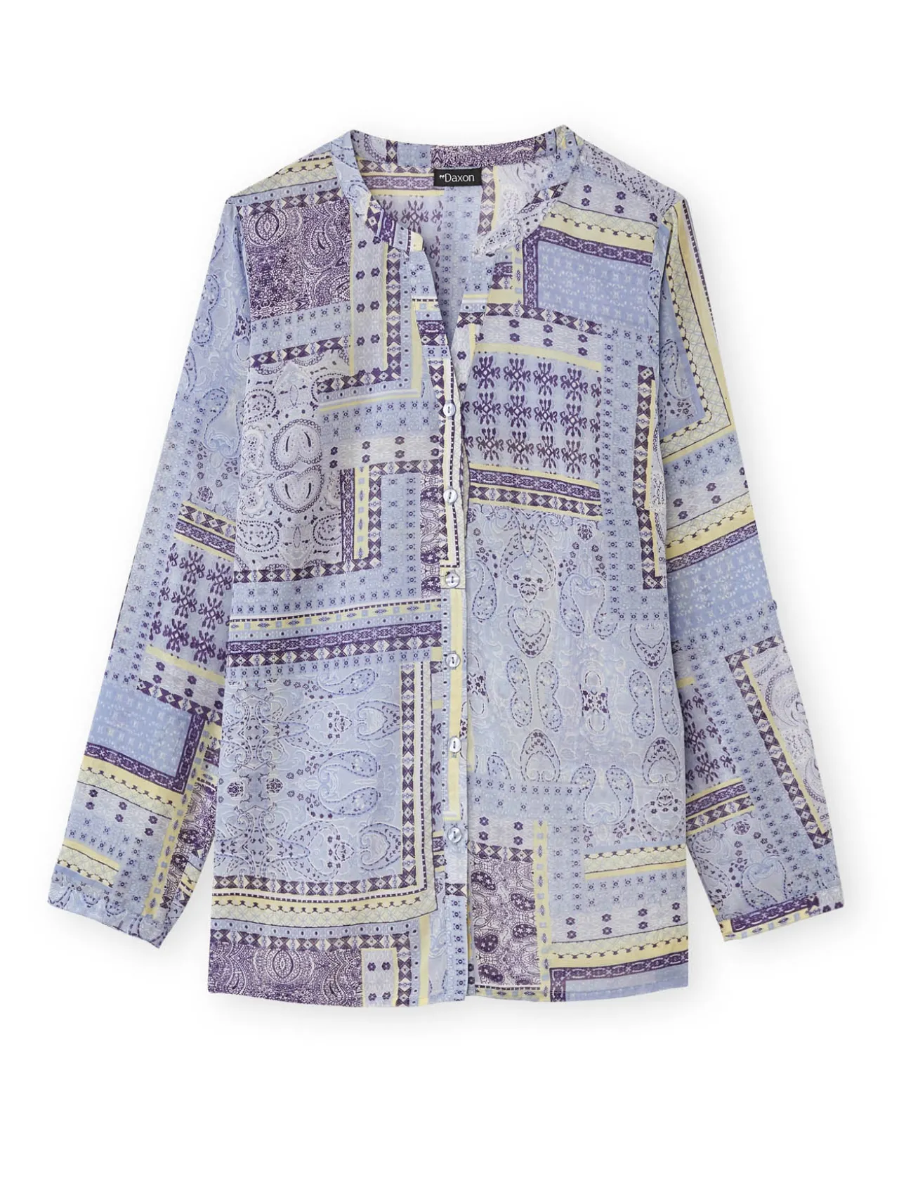 Un imprimé patchwork dans de douces tonalités pour ce chemisier léger. Ses manches longues retroussables par patte boutonnée permettent de s’adapter aux petites variations de température comme à nos envies de changement de style !