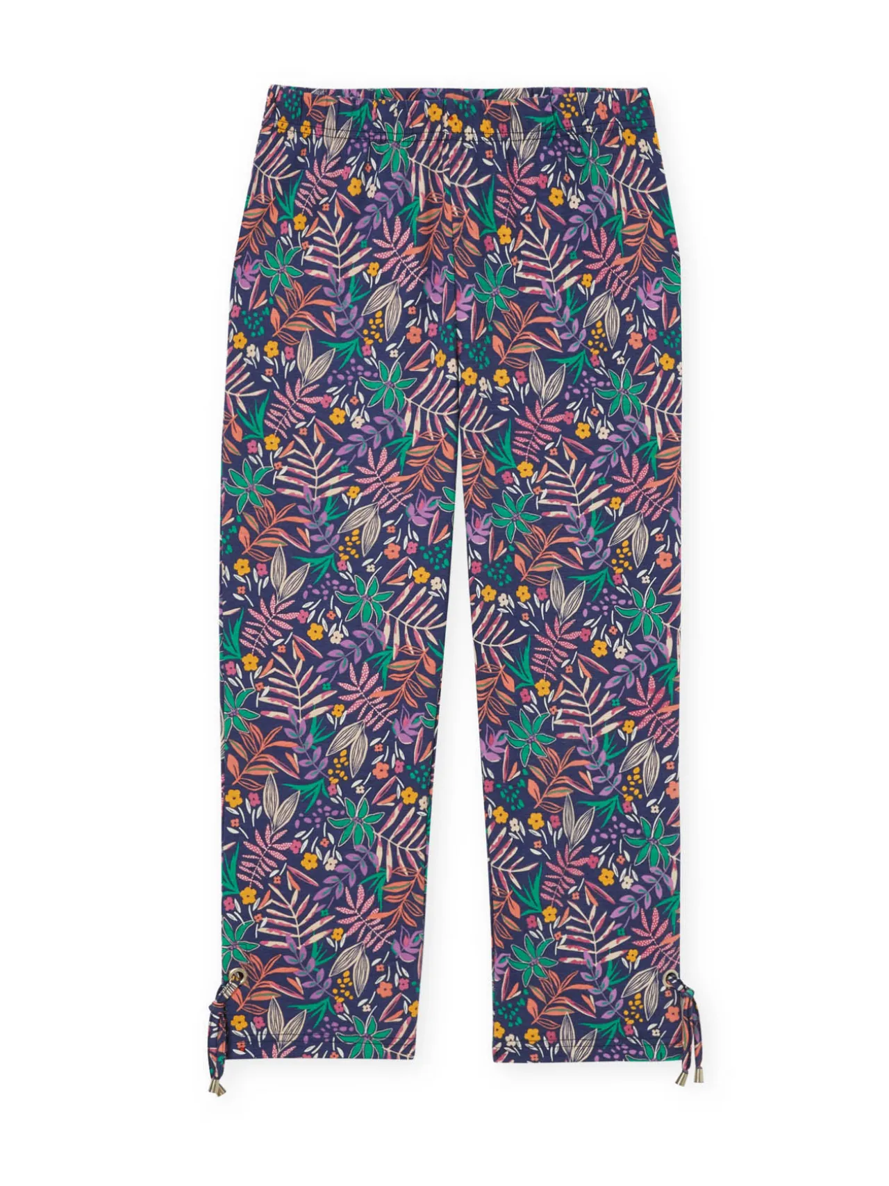Le corsaire à lacets : un indispensable de l’été qui s’associe avec tout ! On aime sa fantaisie de nouette sur gros oeillets argentés au bas des jambes et son imprimé très sympa.