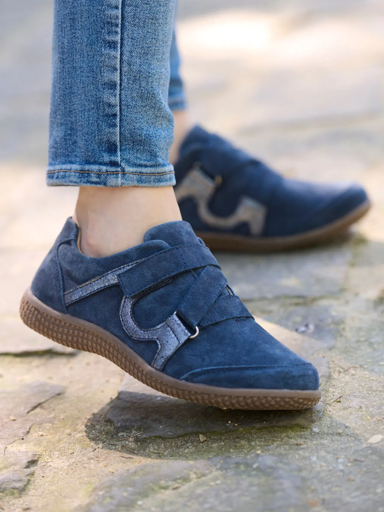 Les derbies PEDICONFORT® s’offrent une petite touche de fantaisie avec leurs empiècements jouant le contraste de matières. La patte scratch est croisée sur le dessus : un détail original qui permet aussi un ajustement parfait au pied.