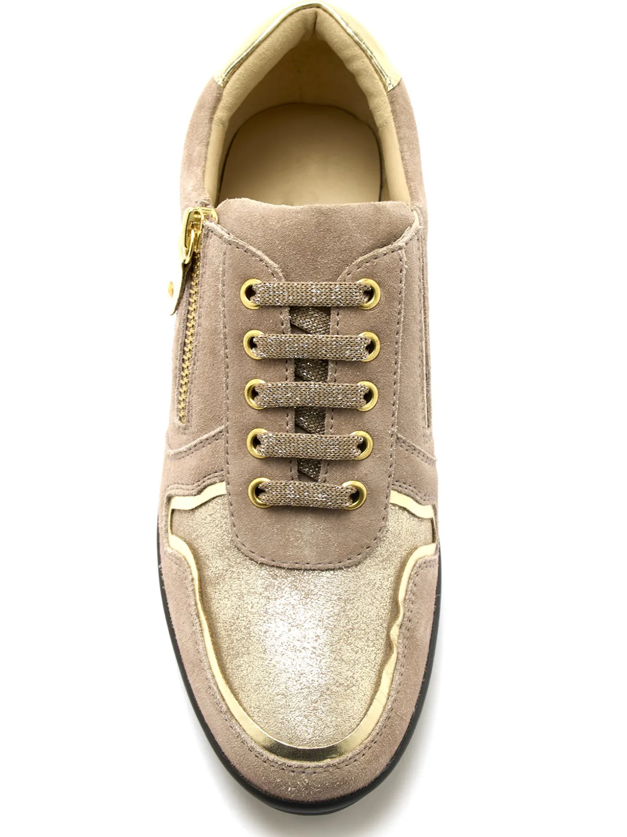 Dessus cuir à détails métallisés.