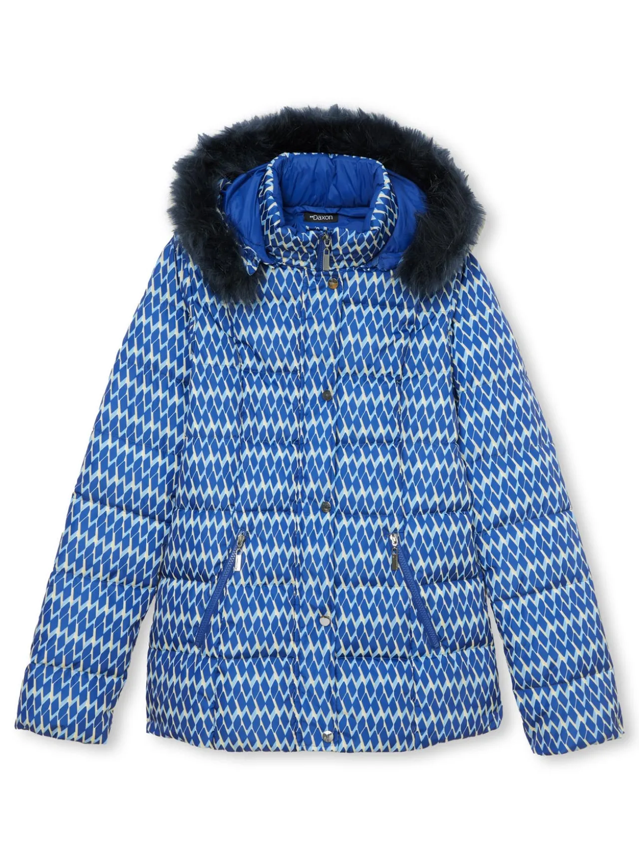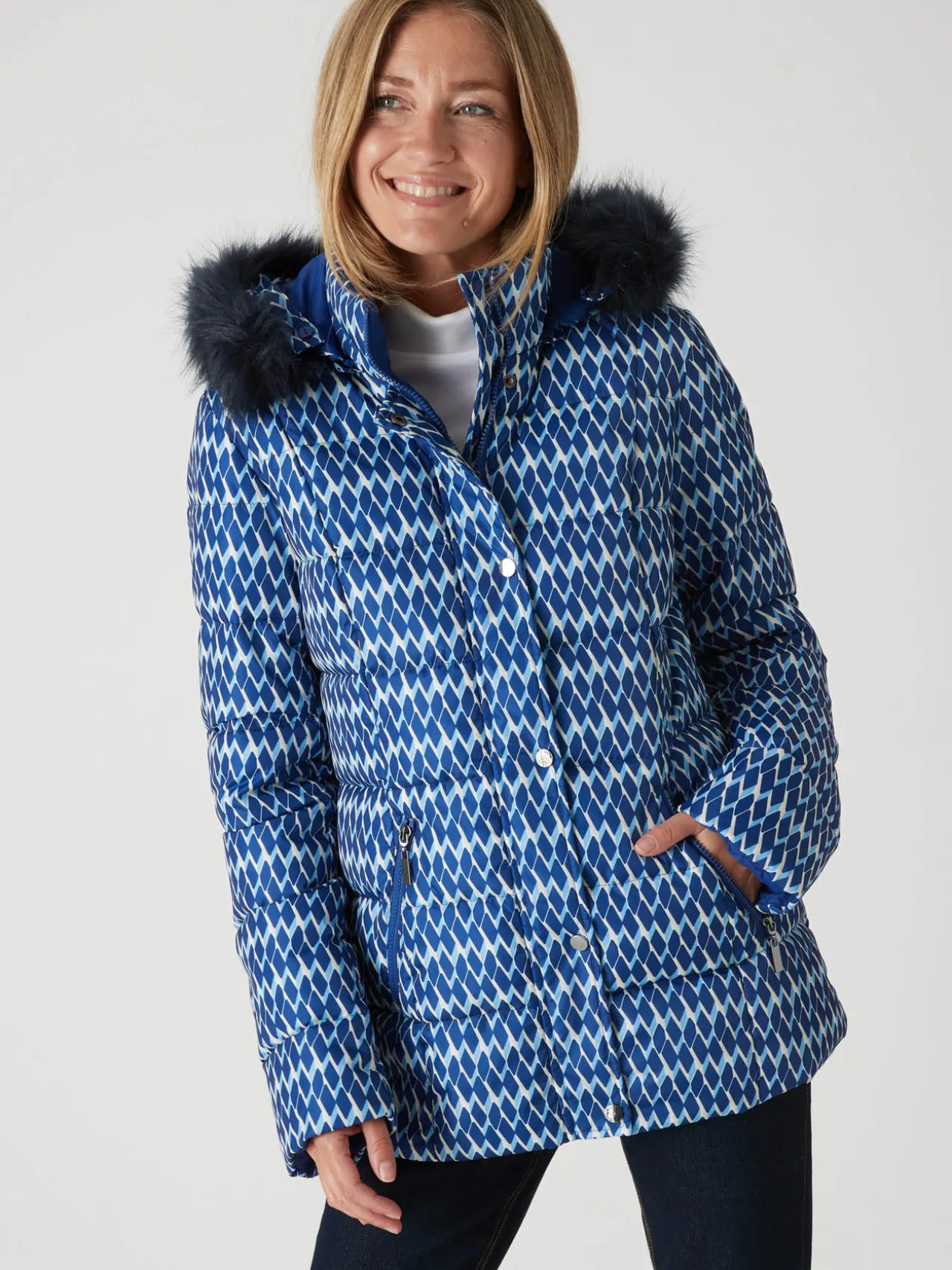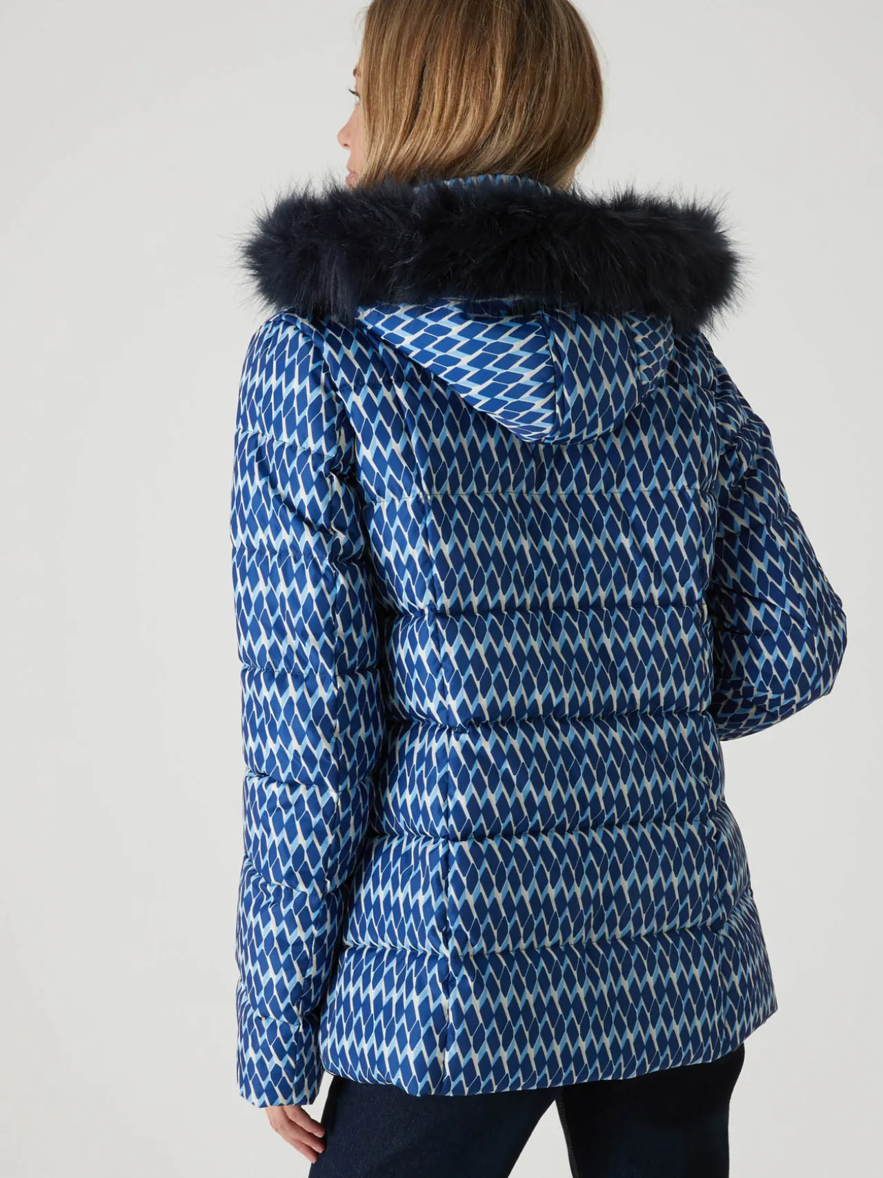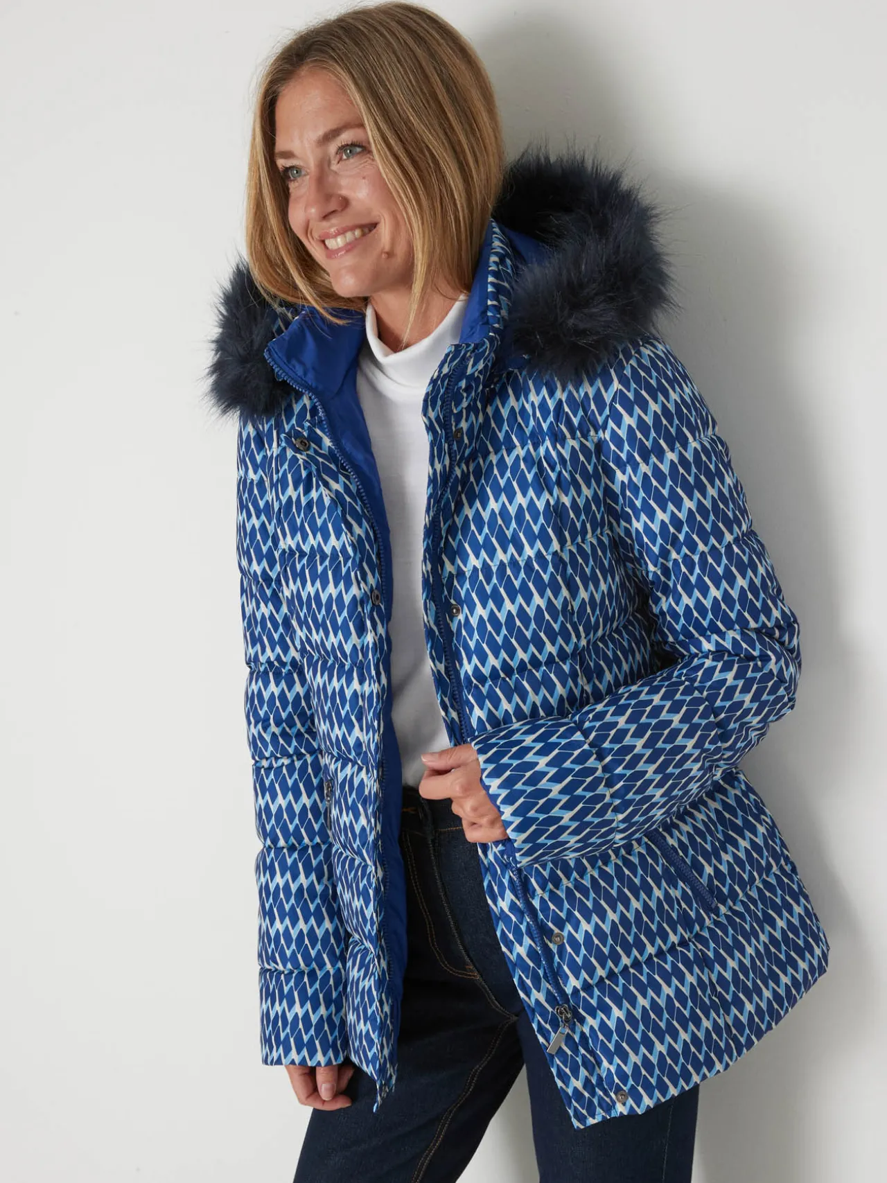 Cette parka imprimée femme est conçue pour s’adapter à toutes les morphologies : petites et grandes tailles.