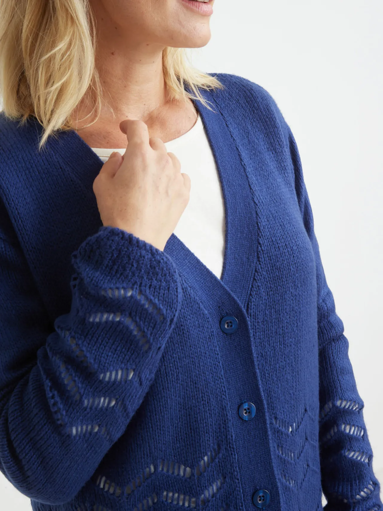 Bien couvrant, ce gilet long permet de masquer les petites rondeurs tout en allongeant la silhouette. Un gilet V, pièce phare du dressing !