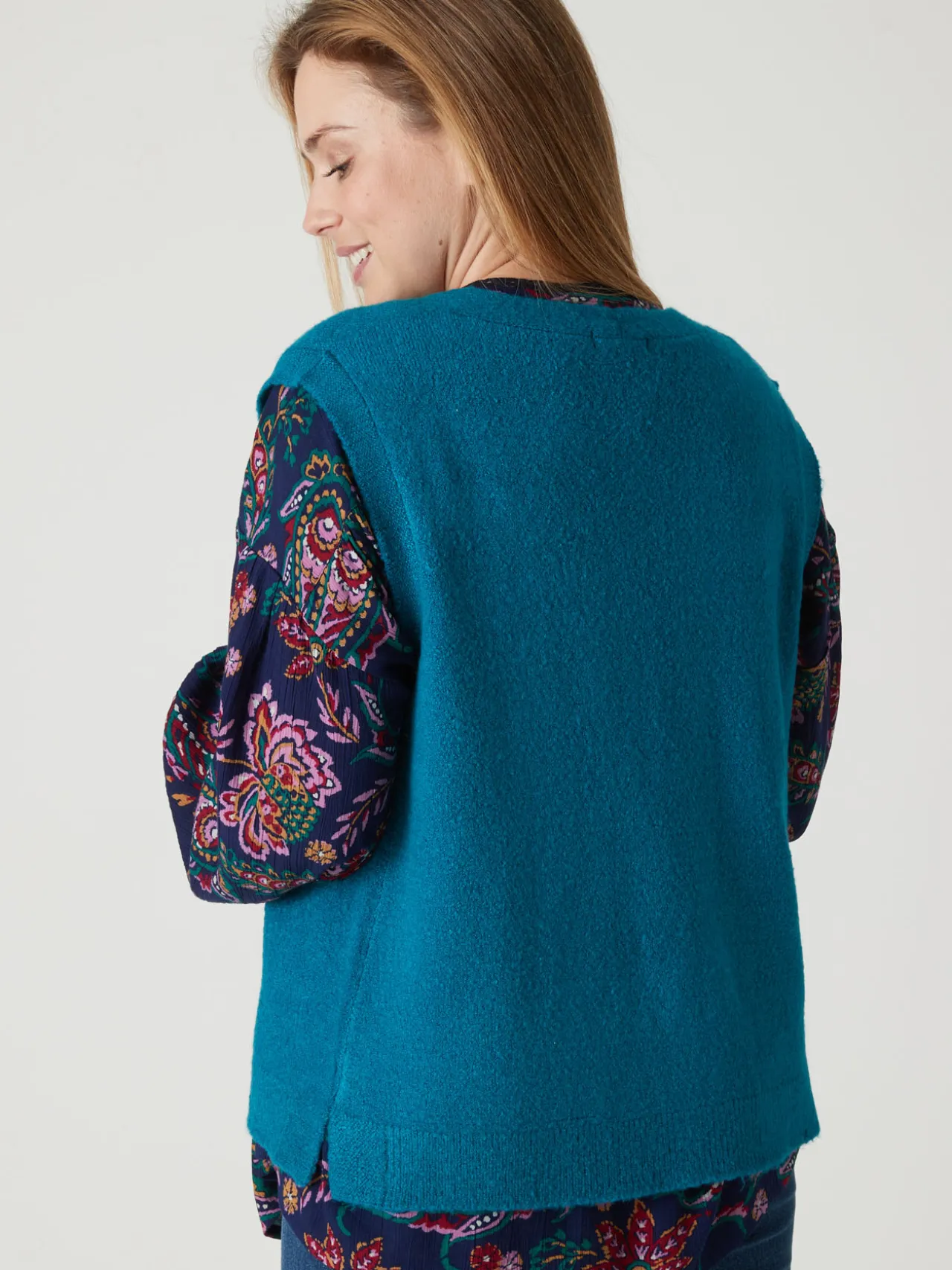 Un petit gilet sans manches que l’on aime par-dessus tout et que l’on porte par dessus- tout ! Sur une blouse, une robe, un sous-pull, il est toujours une petit appoint chaleur et style très apprécié.