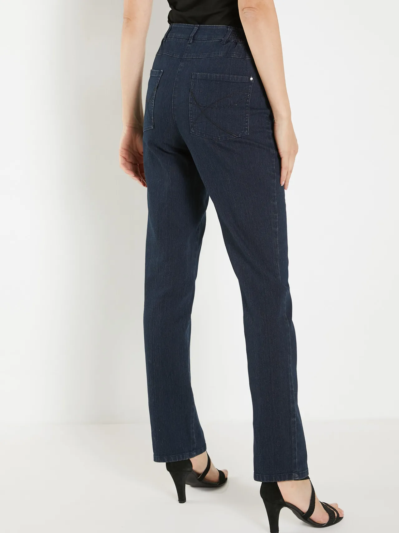 Ce jean coupe droite femme est conçue pour s’adapter à toutes les morphologies : petites et grandes tailles.