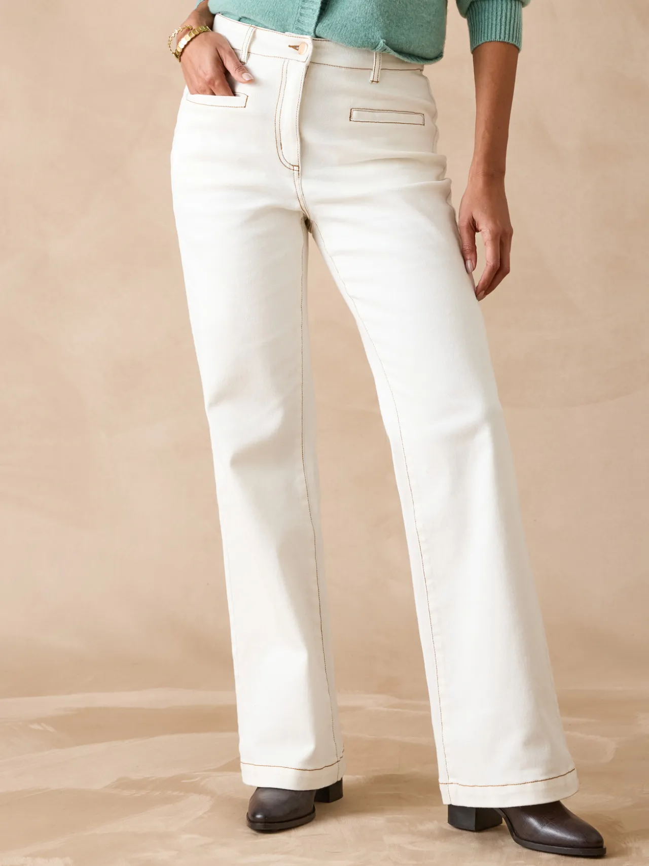 Inspiration seventies pour ce jean bas évasé… Il élance et dynamise la silhouette, et avec sa ceinture élastiqués dos, il est ultra confort !