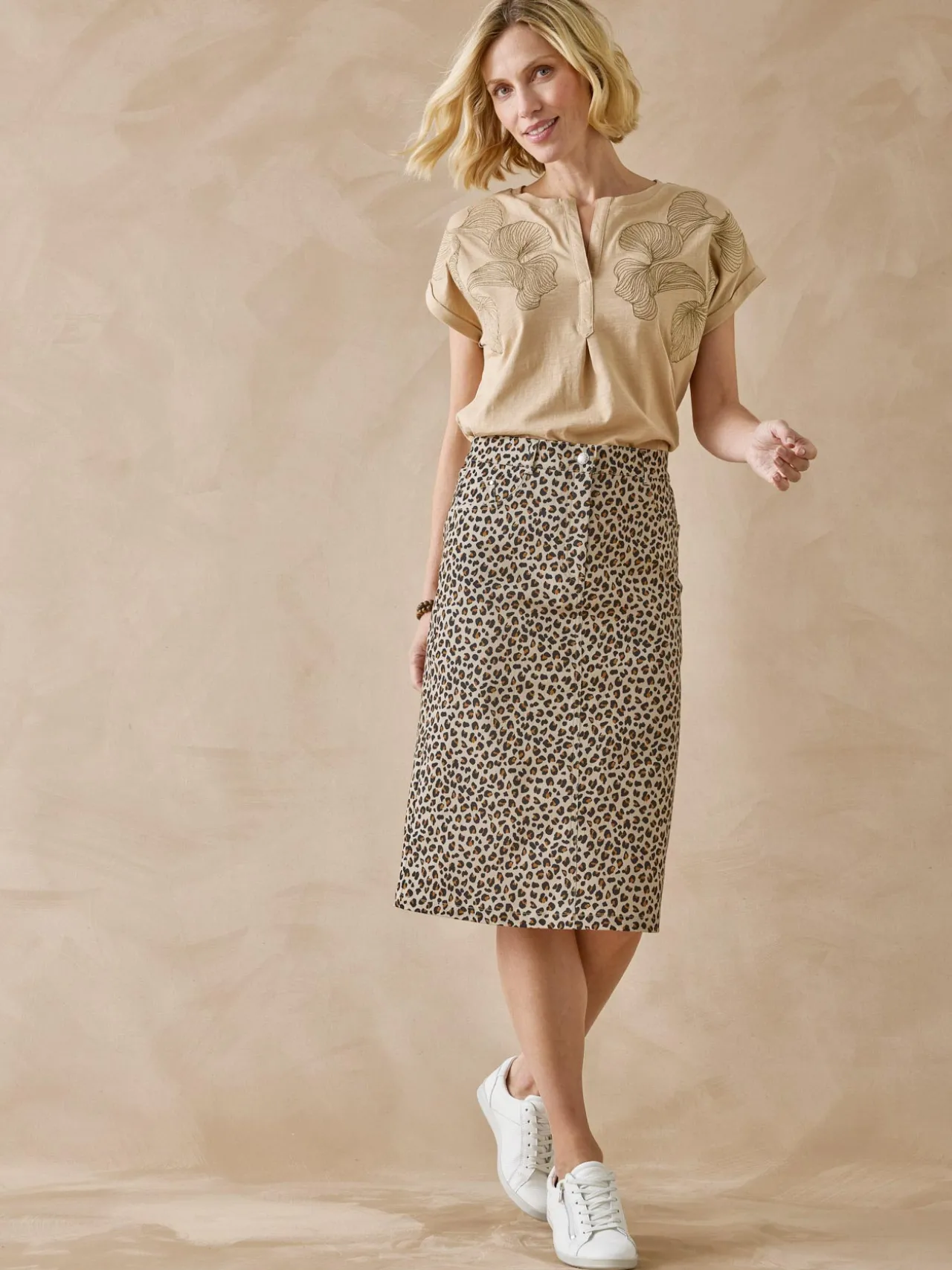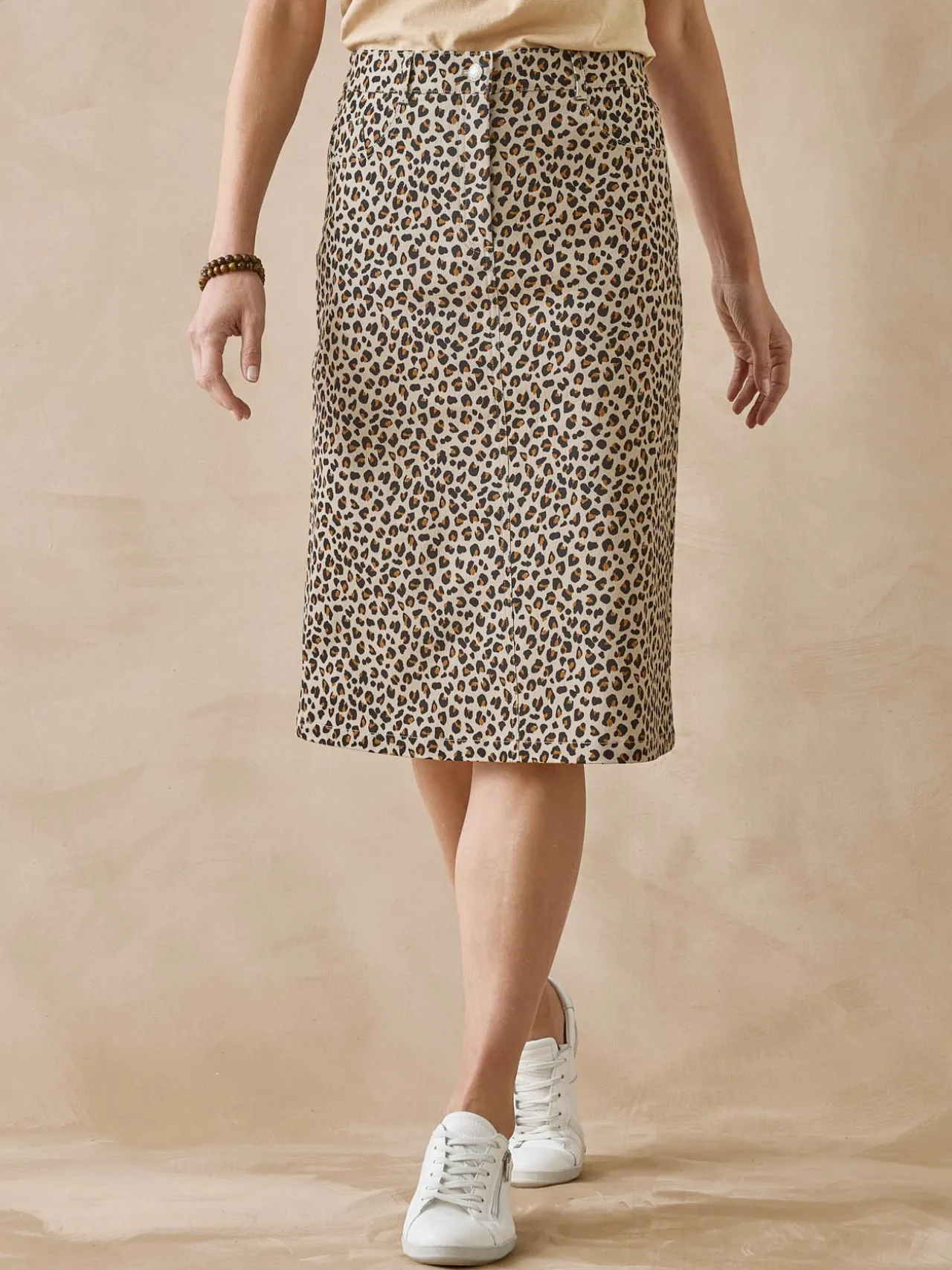 Un imprimé audacieux qui s’inscrit dans la grande tendance « esprit animalier » pour la jupe droite confectionnée dans un tissu sergé extensible confortable. Une pièce forte du dressing, à associer à un haut noir ou dans des tonalités de beige.