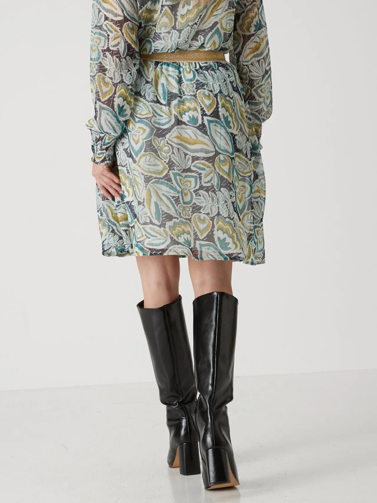 Nuances turquoise ou tonalités orangées… le plus difficile est de choisir entre les 2 imprimés de cette jupe courte. Sa longueur est parfaite pour faire danser joliment la silhouette !