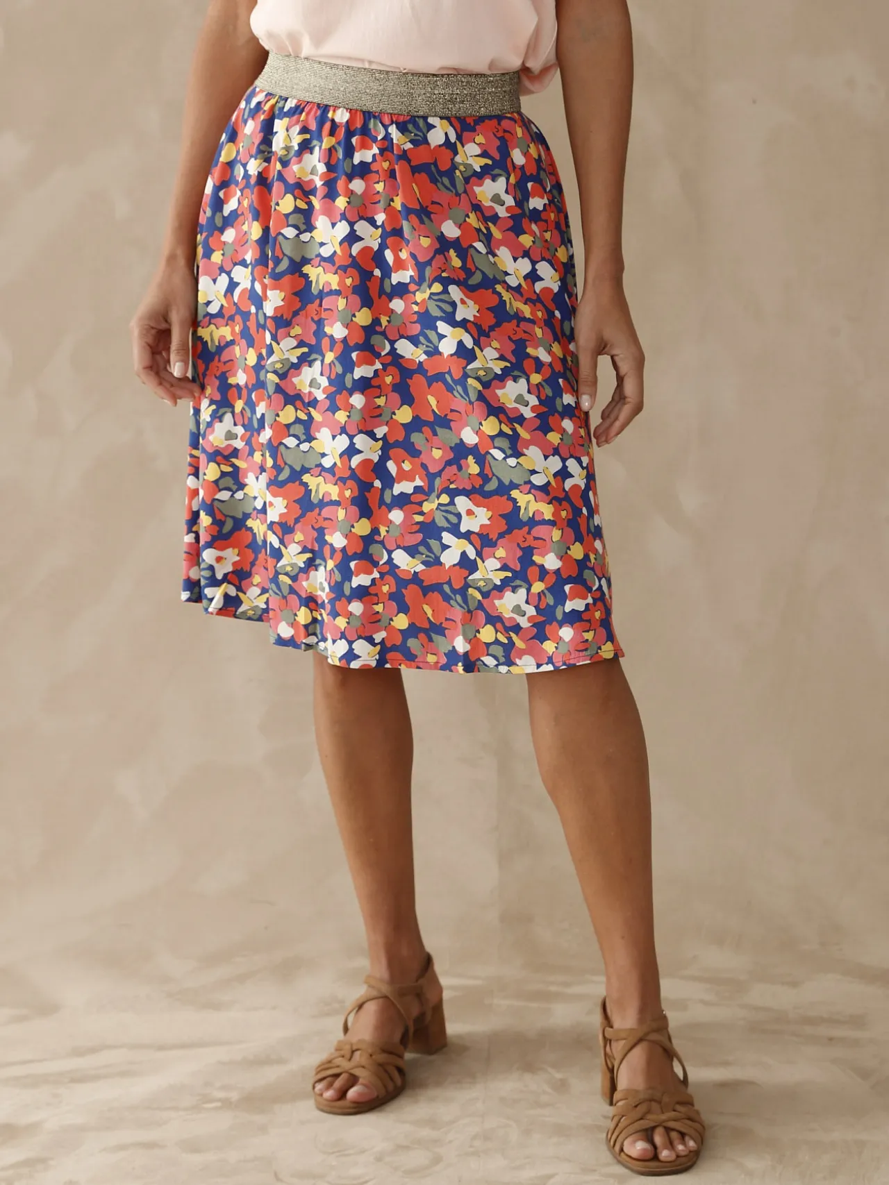 Cette jupe imprimée est conçue pour toutes les morphologies : petites et grandes tailles.