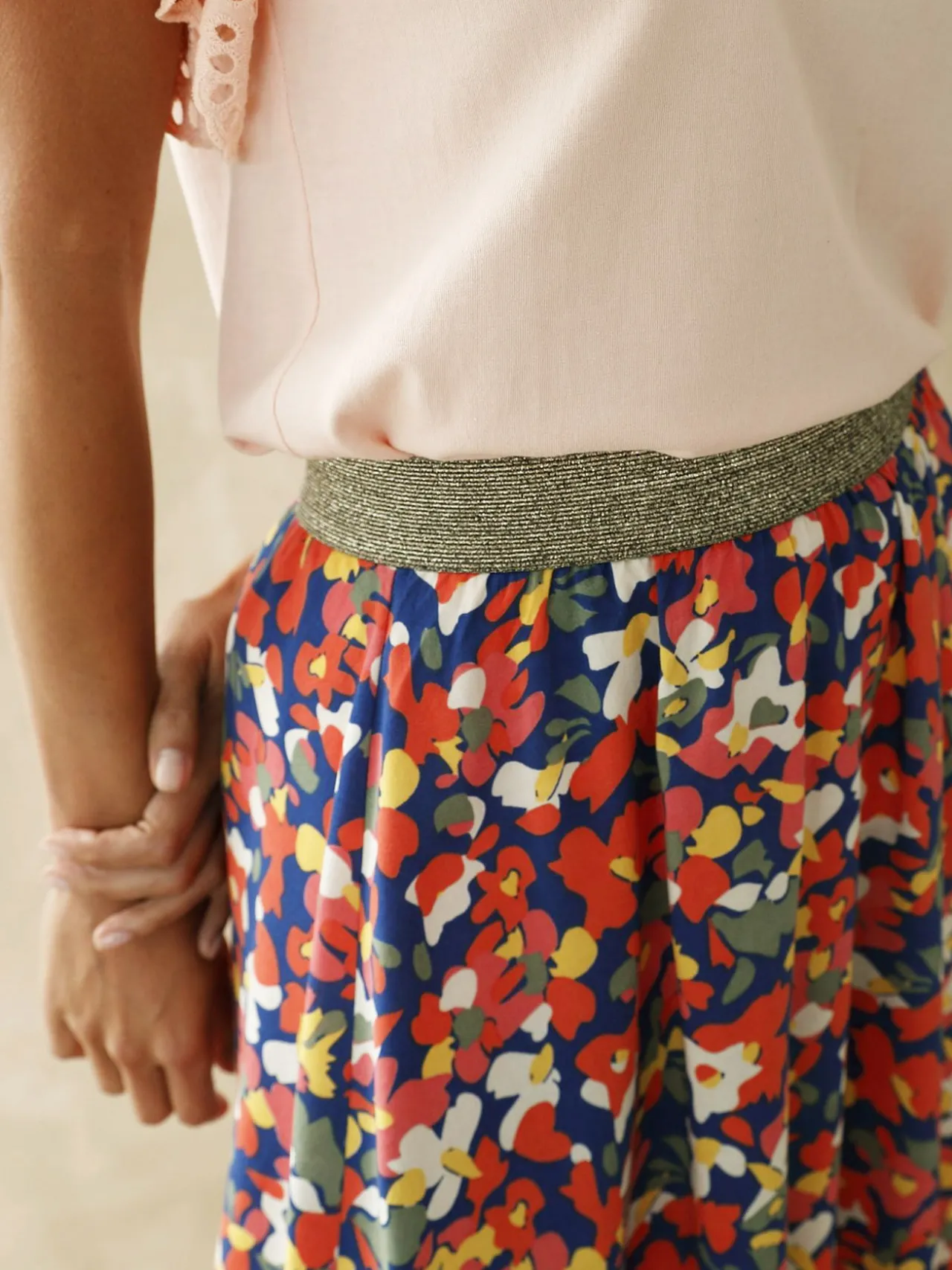 – Ceinture entièrement élastiquée avec fil doré