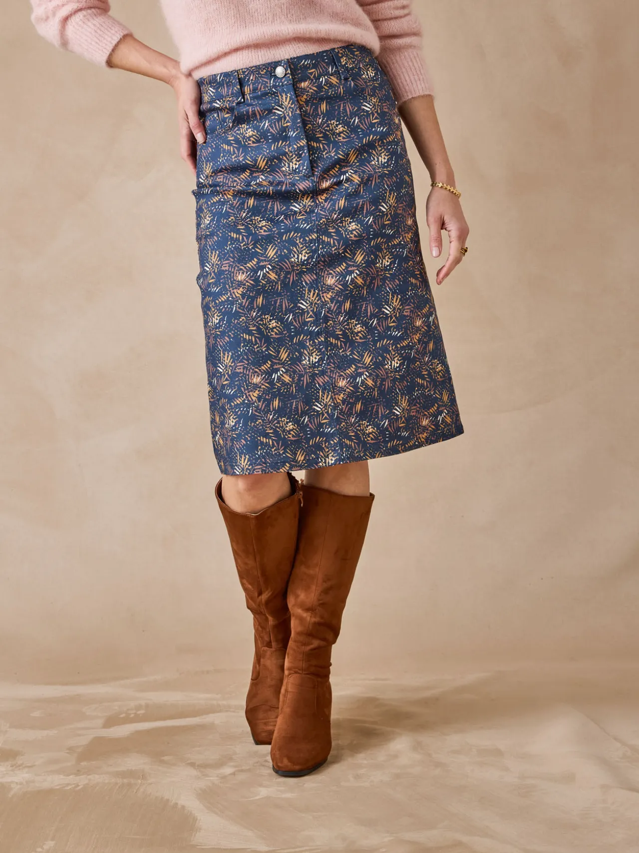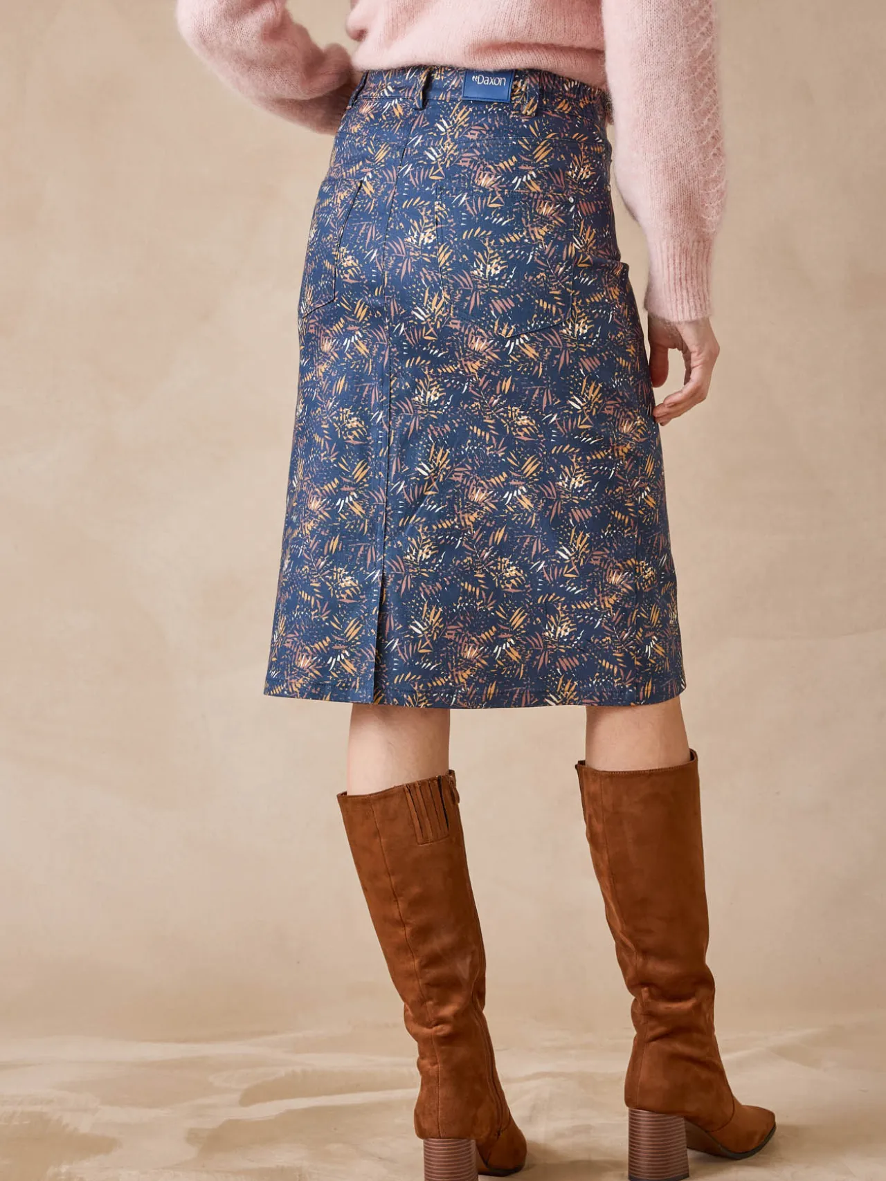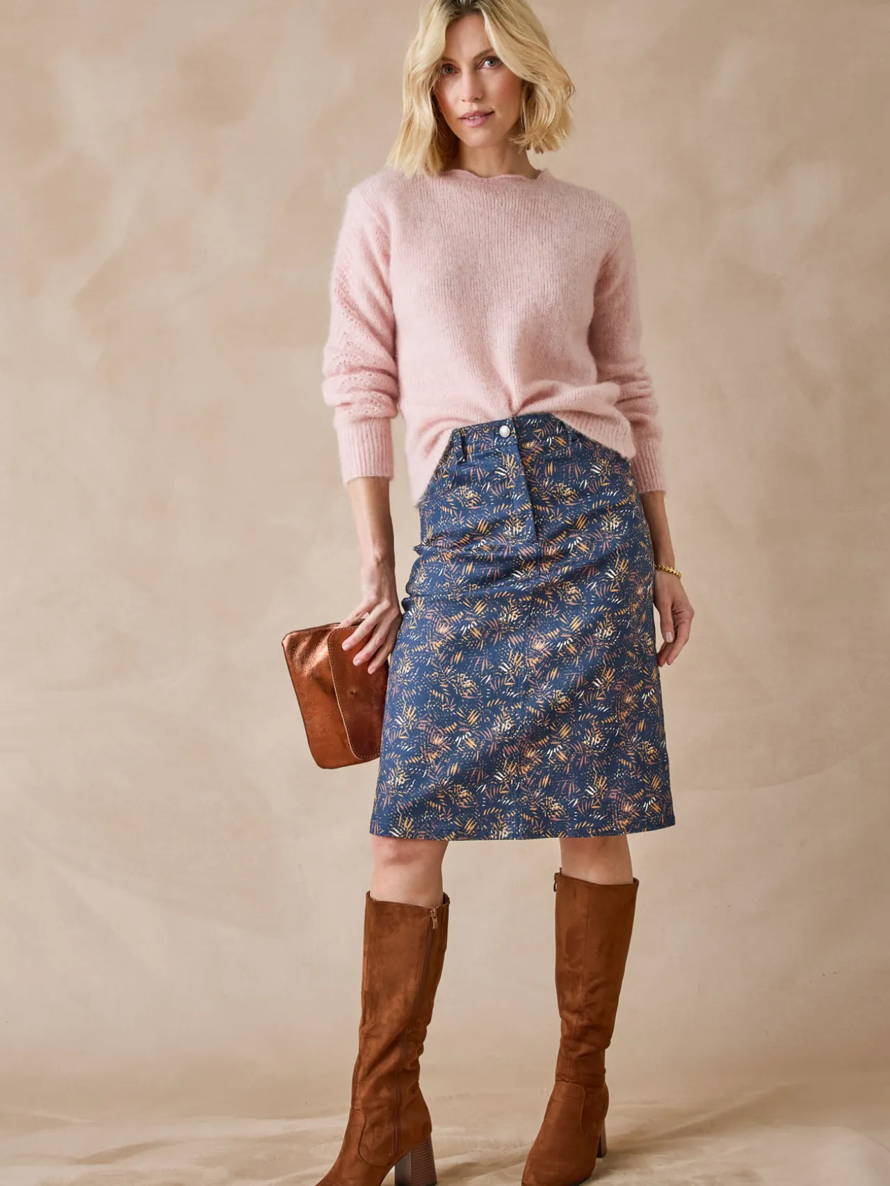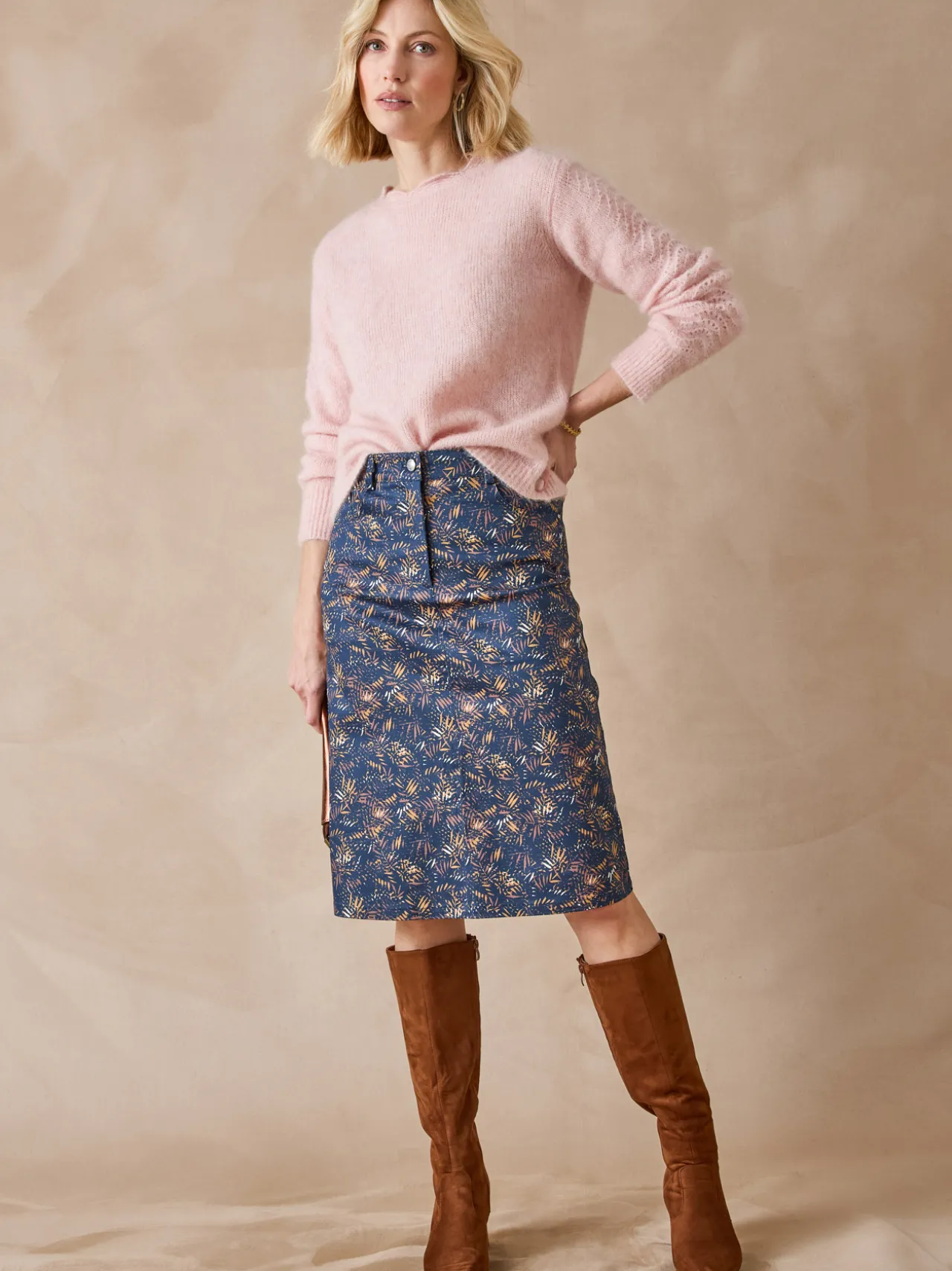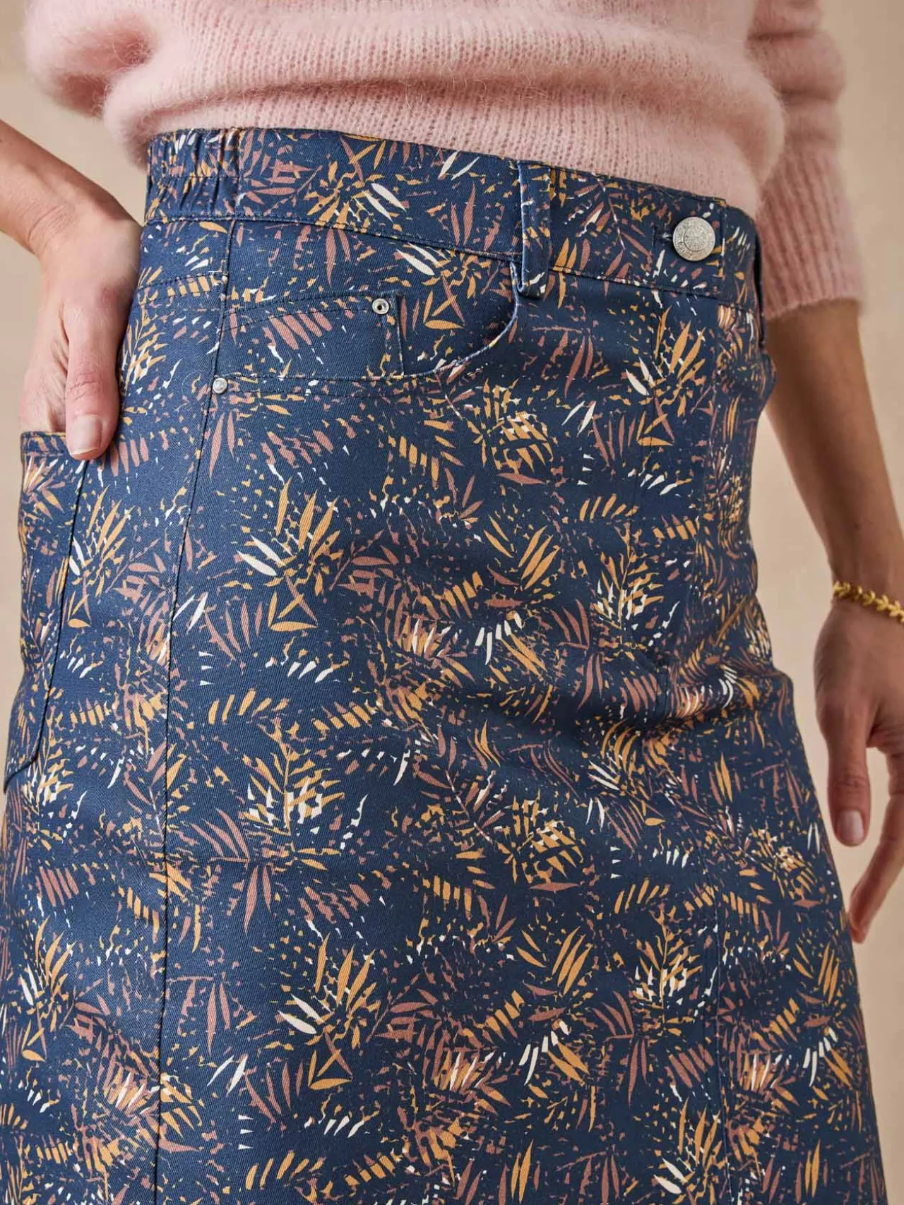 Une coupe 5 poches actuelle pour cette jupe droite imprimée. On la mixe à un pull, une blouse ou un joli tee-shirt et le tour est joué : voilà une tenue idéale, facile à vivre.