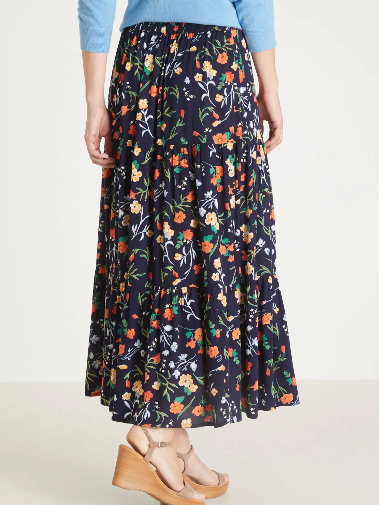 Cette jupe ample élastiquée est conçue pour s’adapter à toutes les morphologies : petites et grandes tailles.