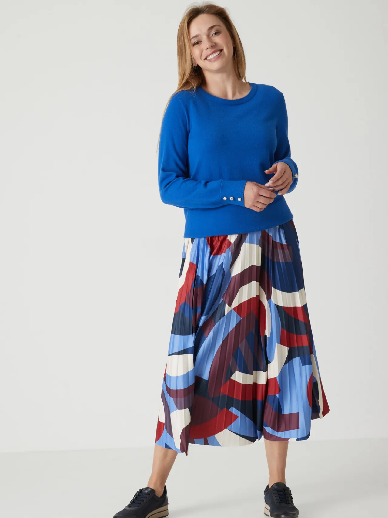 Toujours très stylée, la jupe plissée soleil et ultra confortable grâce à une ceinture entièrement élastiquée sous tunnel.