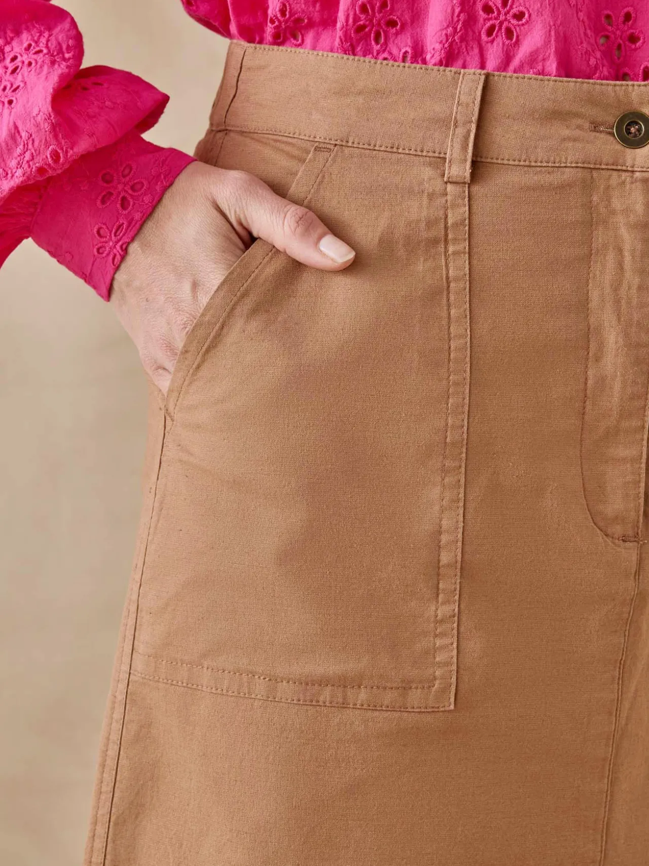 Un mélange coton et lin, avec en plus une touche de lin pour encore plus de confort… Cette jupe en toile est un bon pion du dressing estival ! On aime sa coupe esprit cargo, avec ses grandes poches devant, dans un style pile dans la tendance !