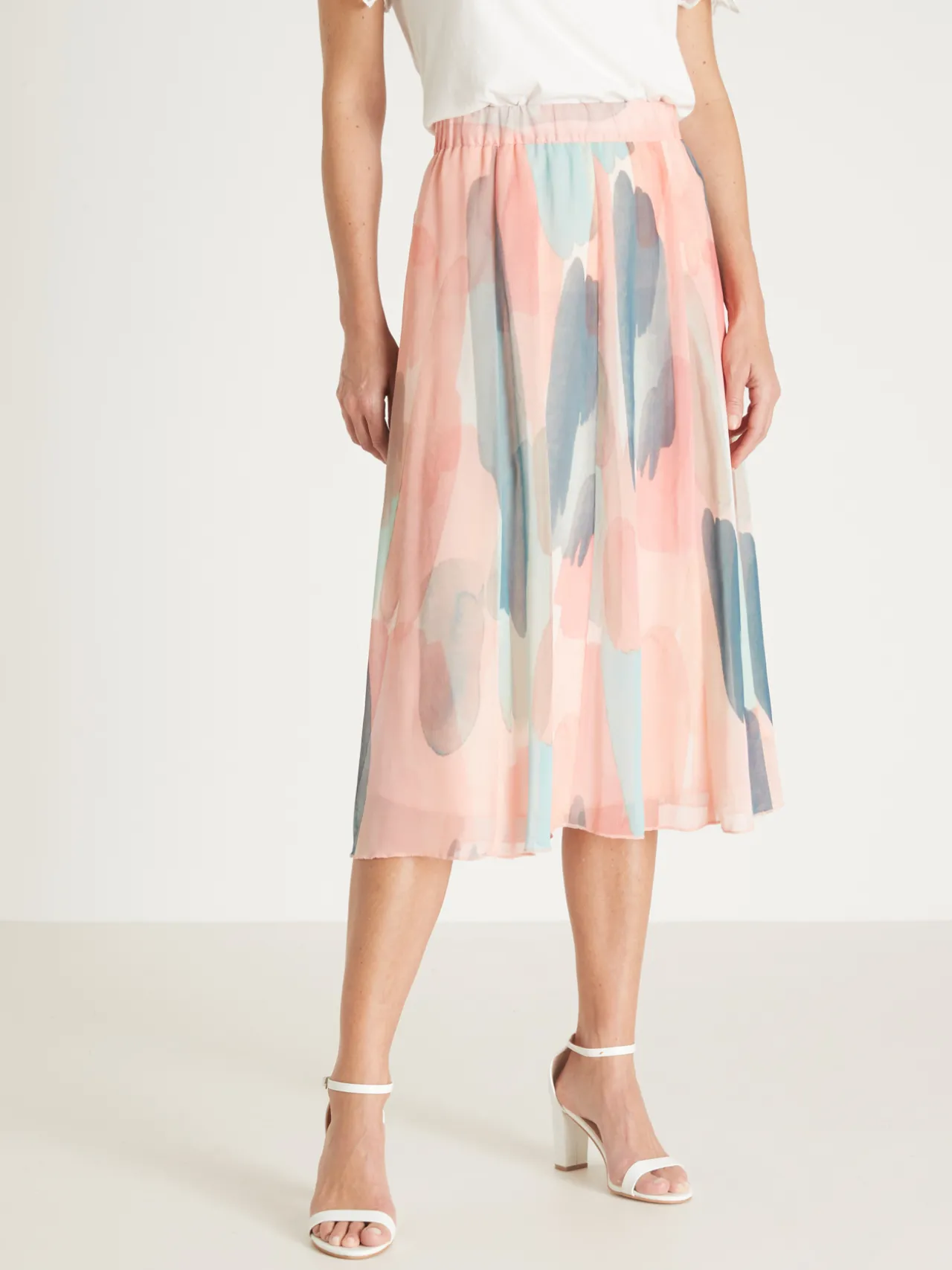 Un peu de légèreté dans le dressing avec cette très jolie jupe imprimée esprit « coups de pinceau ». Elle est confectionnée dans un voile aérien très agréable. Associée à une jolie blouse unie ou un petit tee-shirt raffiné, cette jupe évasée compose une tenue parfaite pour vos sorties.