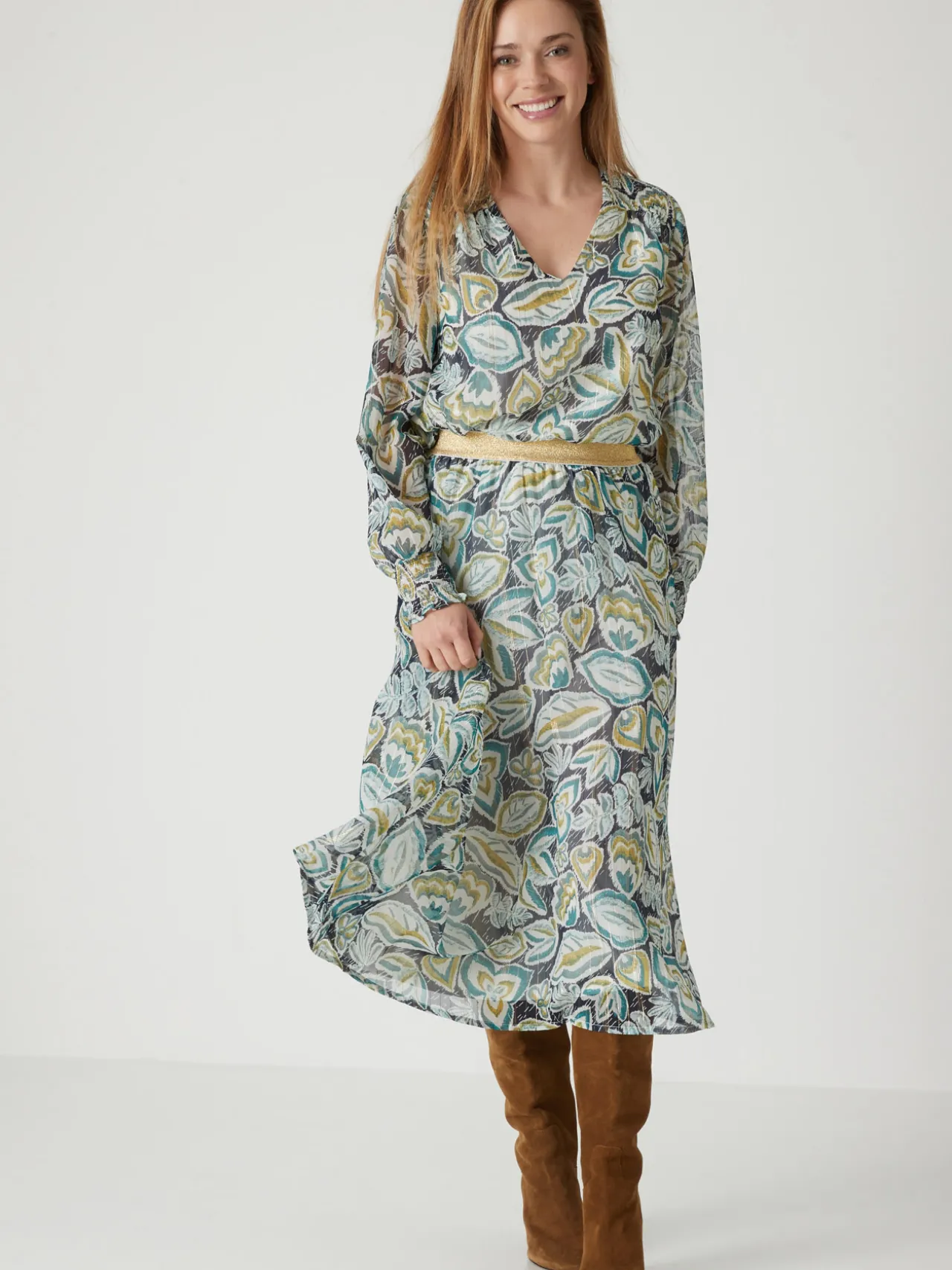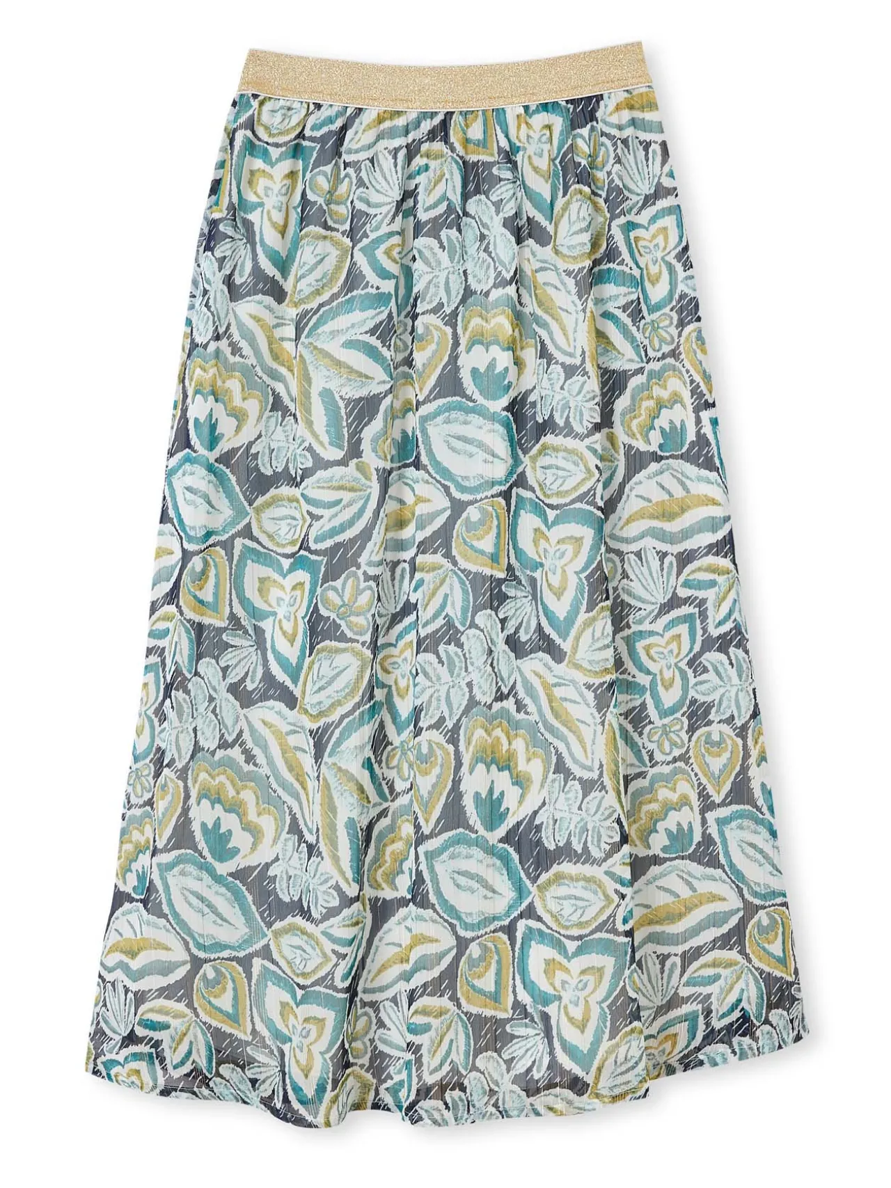 Une jupe longue, qui s’enfile en un clin d’oeil grâce à sa ceinture entièrement élastiquée. On l’associe à une blouse, ou comme nos stylistes, on aime la porter avec un pull, semi-rentré pour suivre la tendance !