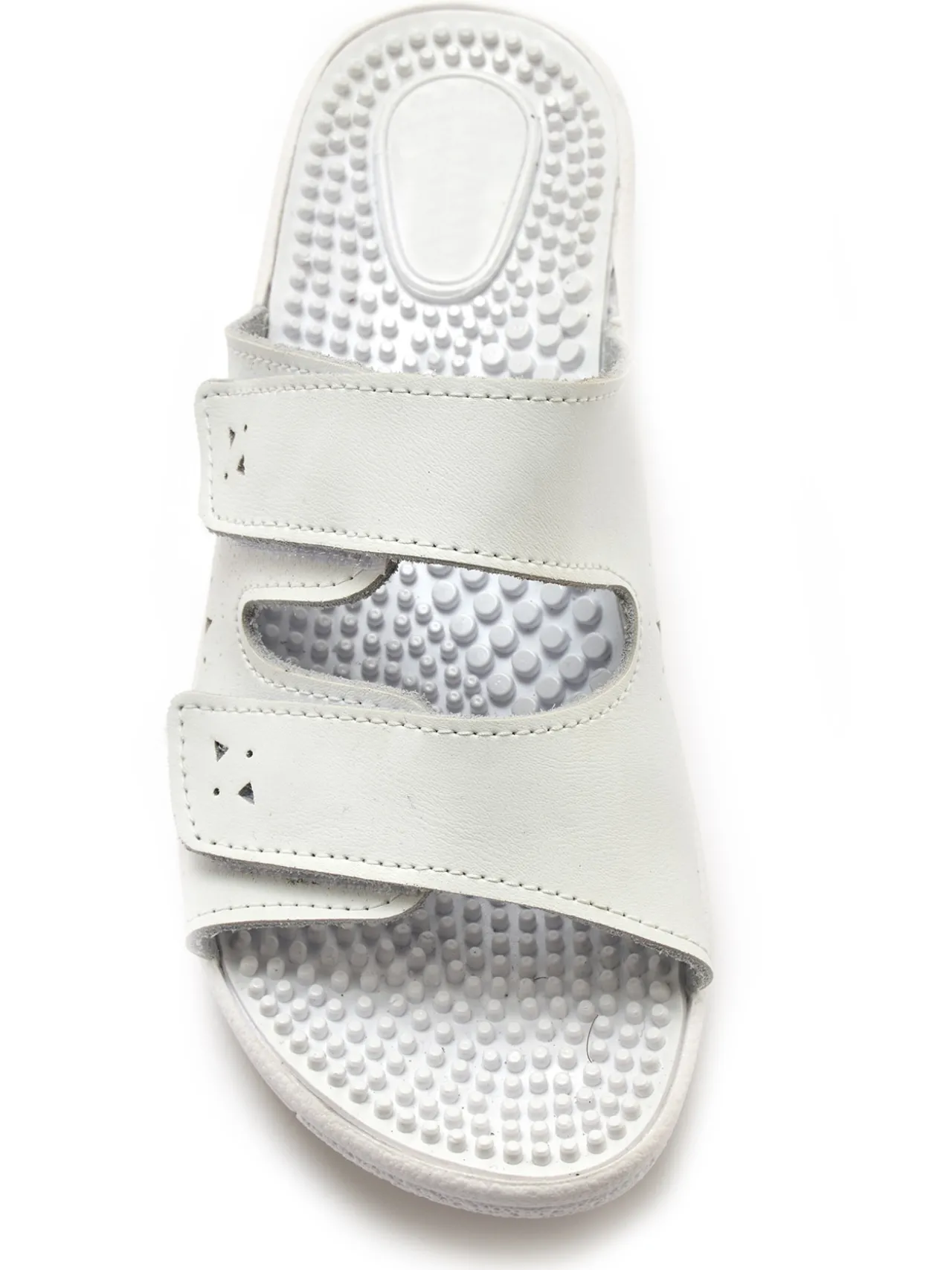 On pose le pied dans ces mules blanches en cuir, on scratch et on profite à loisir de leur confort ! Le petit bonus : leur semelle intérieure avec picots massants, pour une agréable sensation de détente.
