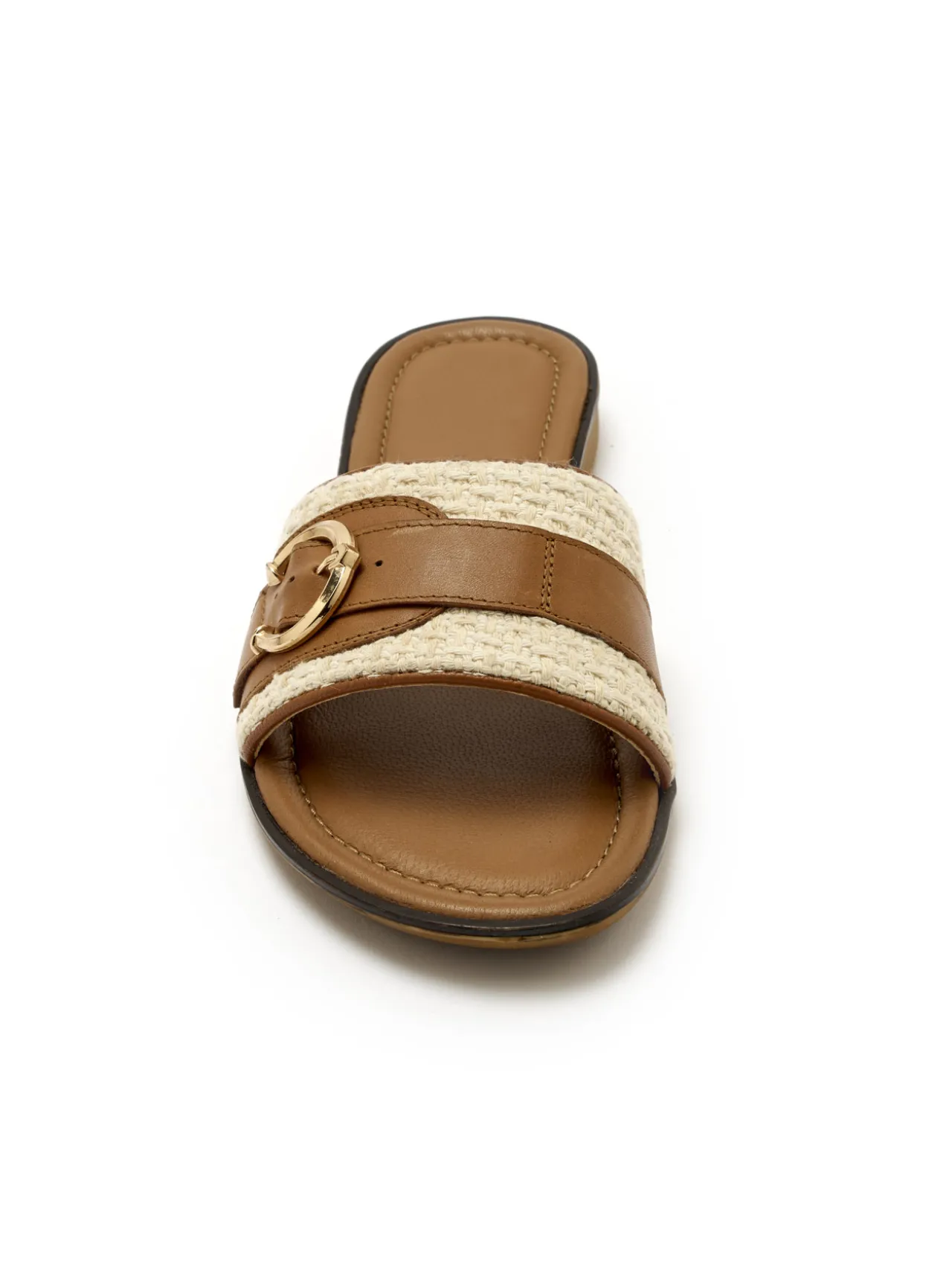 Ces mules plates affichent l’élégance d’un dessus cuir et textile. Faciles à associer à toutes vos tenues dans un esprit chic décontracté !