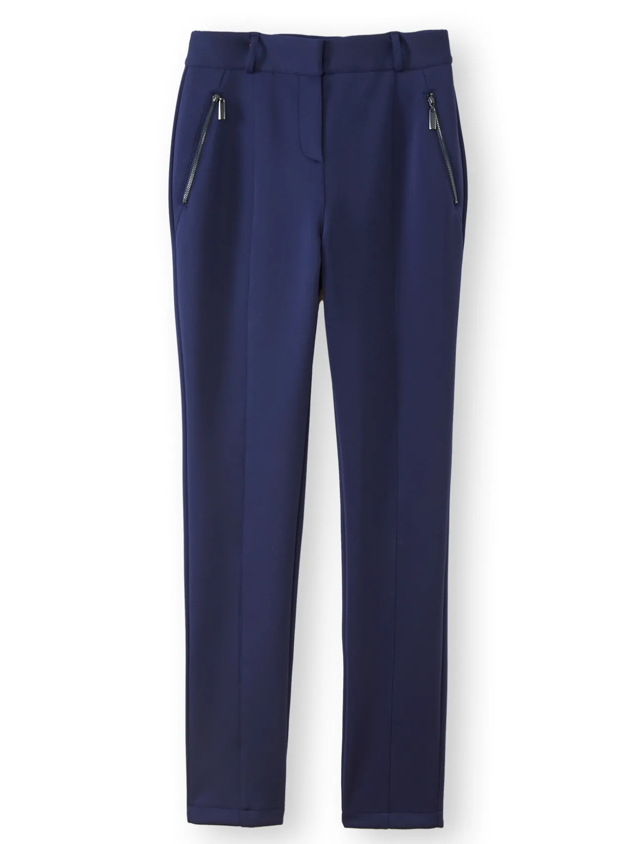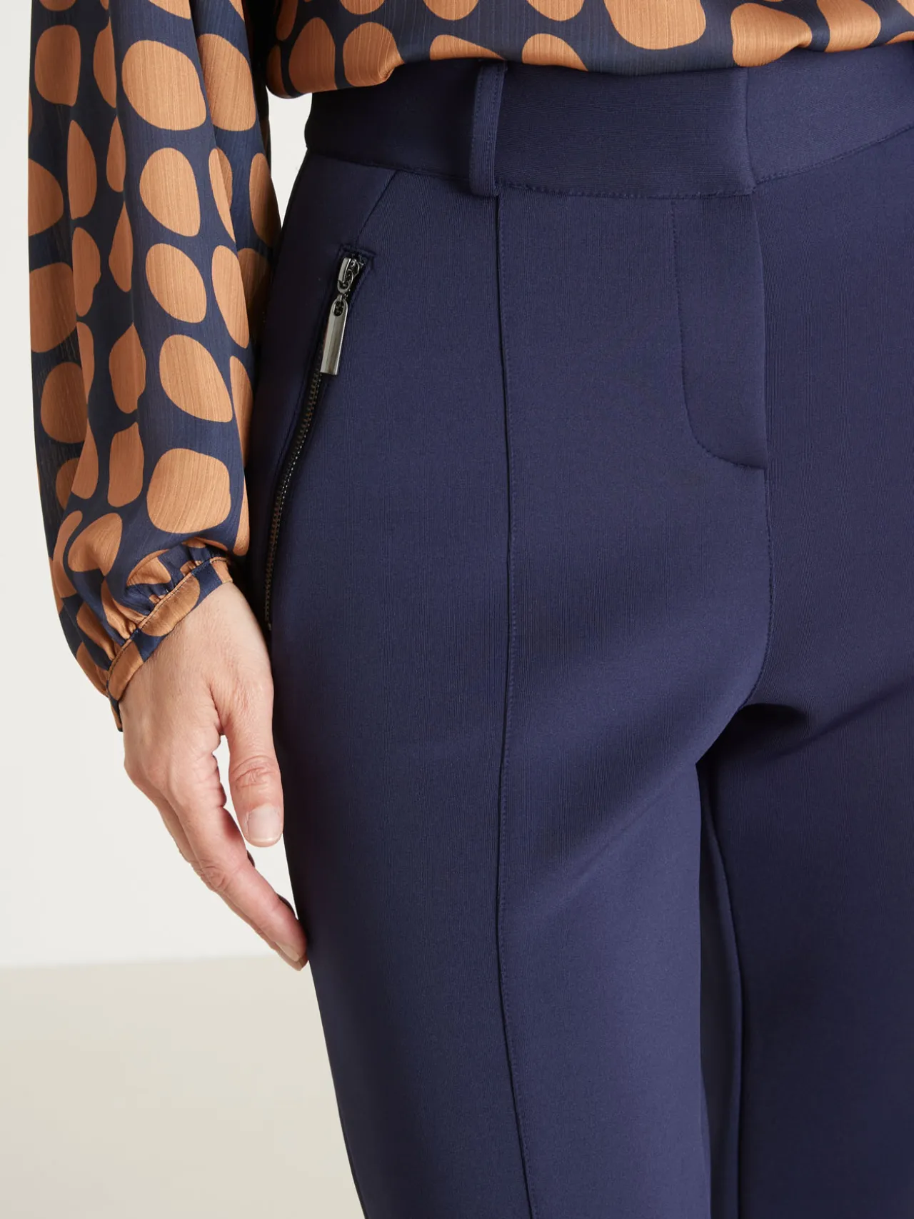 Chic d’un coloris marine et d’une maille satinée tout confort pour ce pantalon élastiqué dos. Un must-have du dressing !