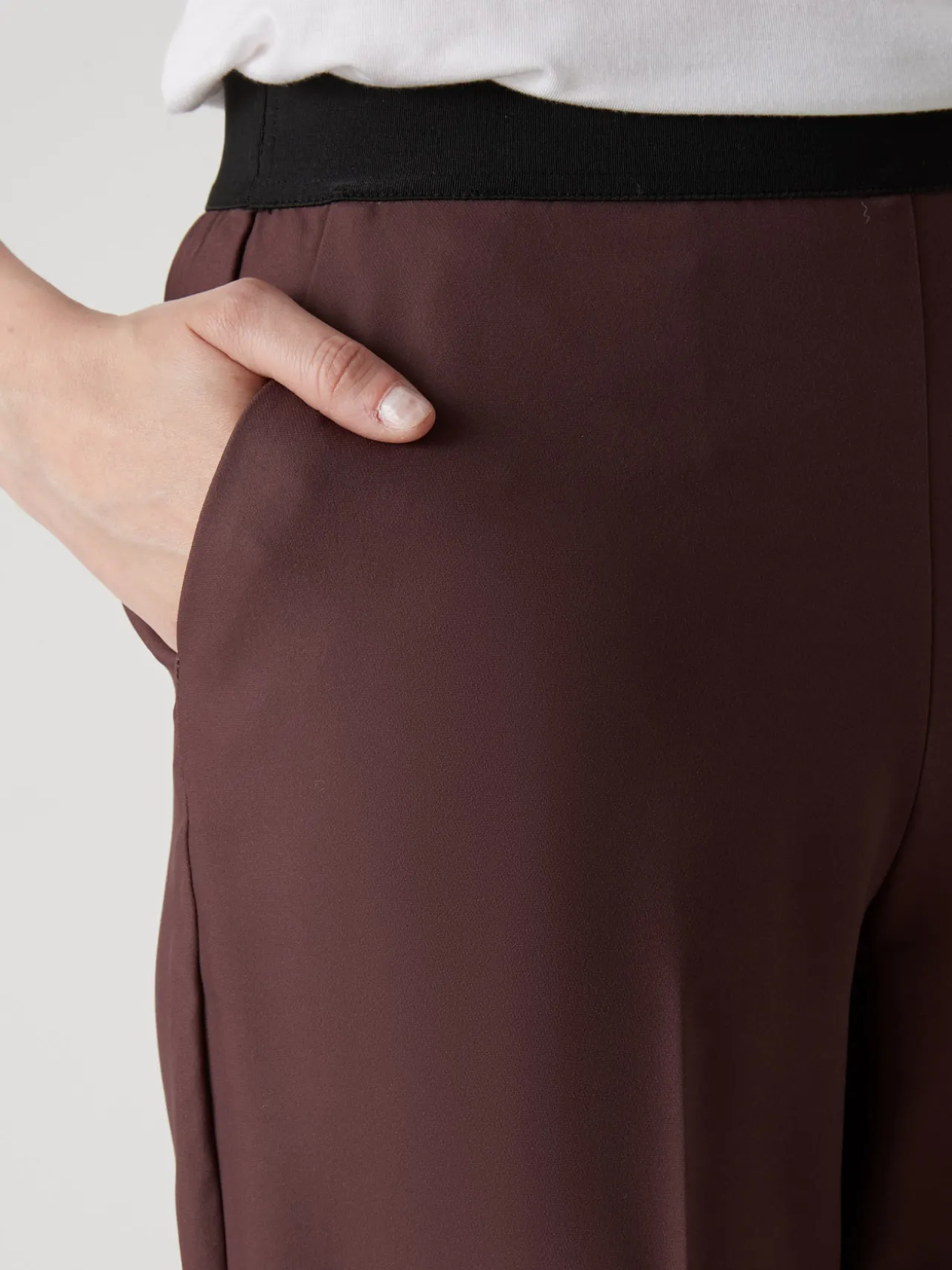 Le pantalon classique a toute sa place dans le dressing tant il est facile à coordonner à tous nos hauts. Celui-ci est tout confort grâce à un élastique plat devant, légèrement froncé au dos, qui ne crée pas d’effet de surépaisseur.