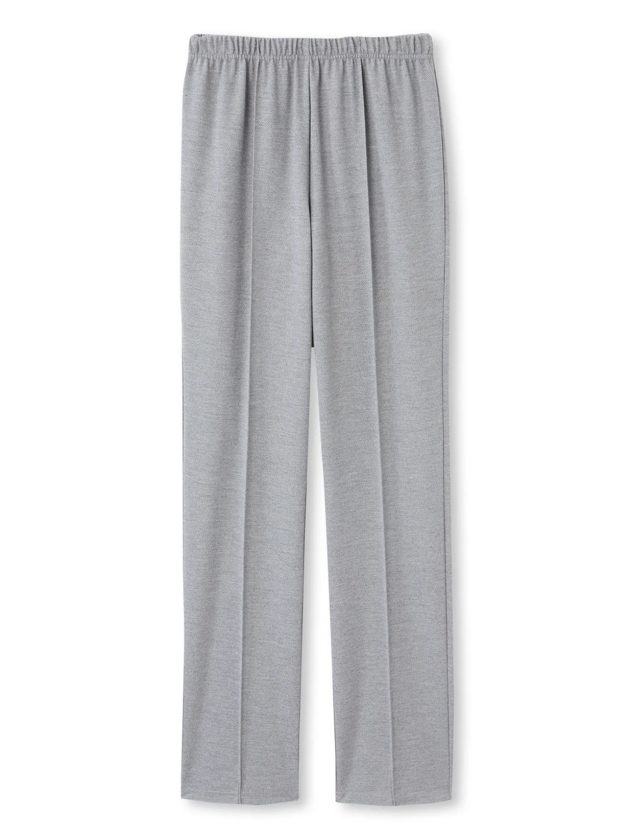 Taille entièrement élastiquée. Pli nervuré devant, permanent au dos.