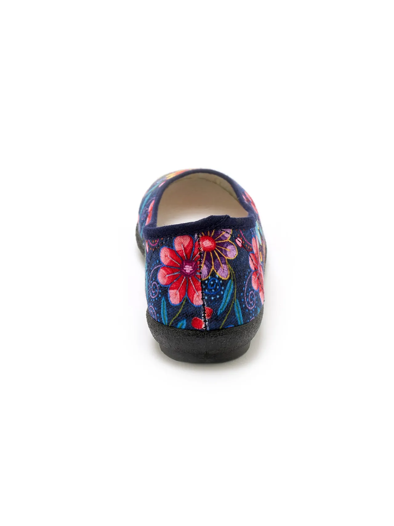 Dessus, doublure et semelle intérieure en textile. Finition biais uni. Semelle élastomère. Talon 1 cm env. Largeur confort.