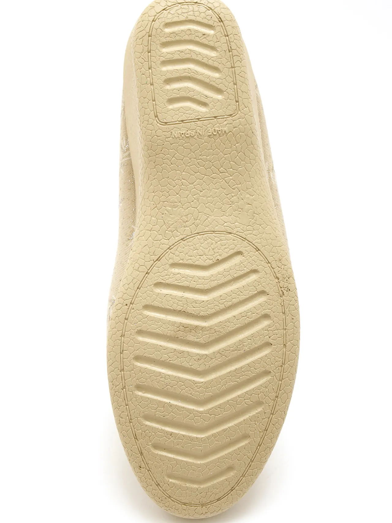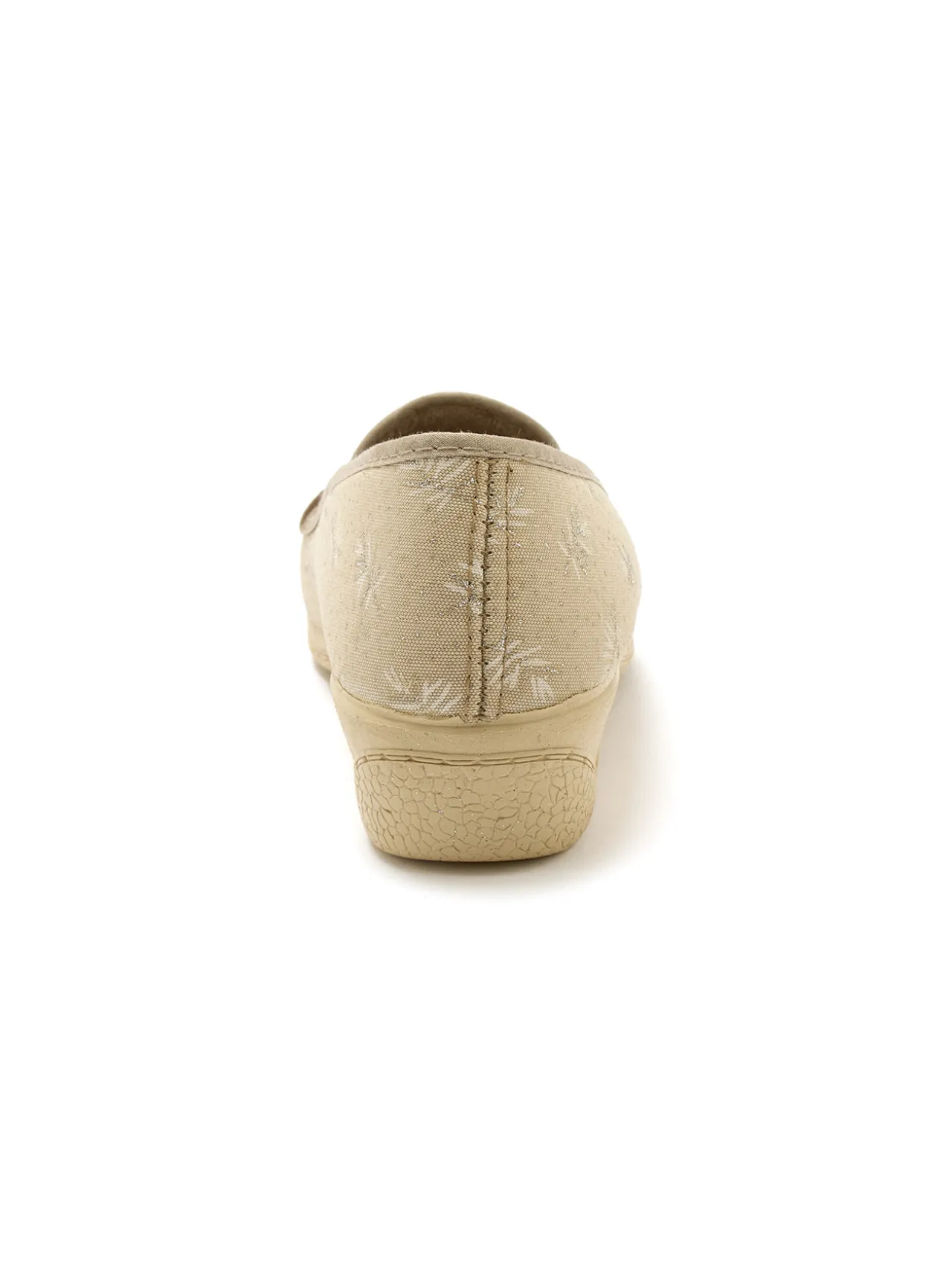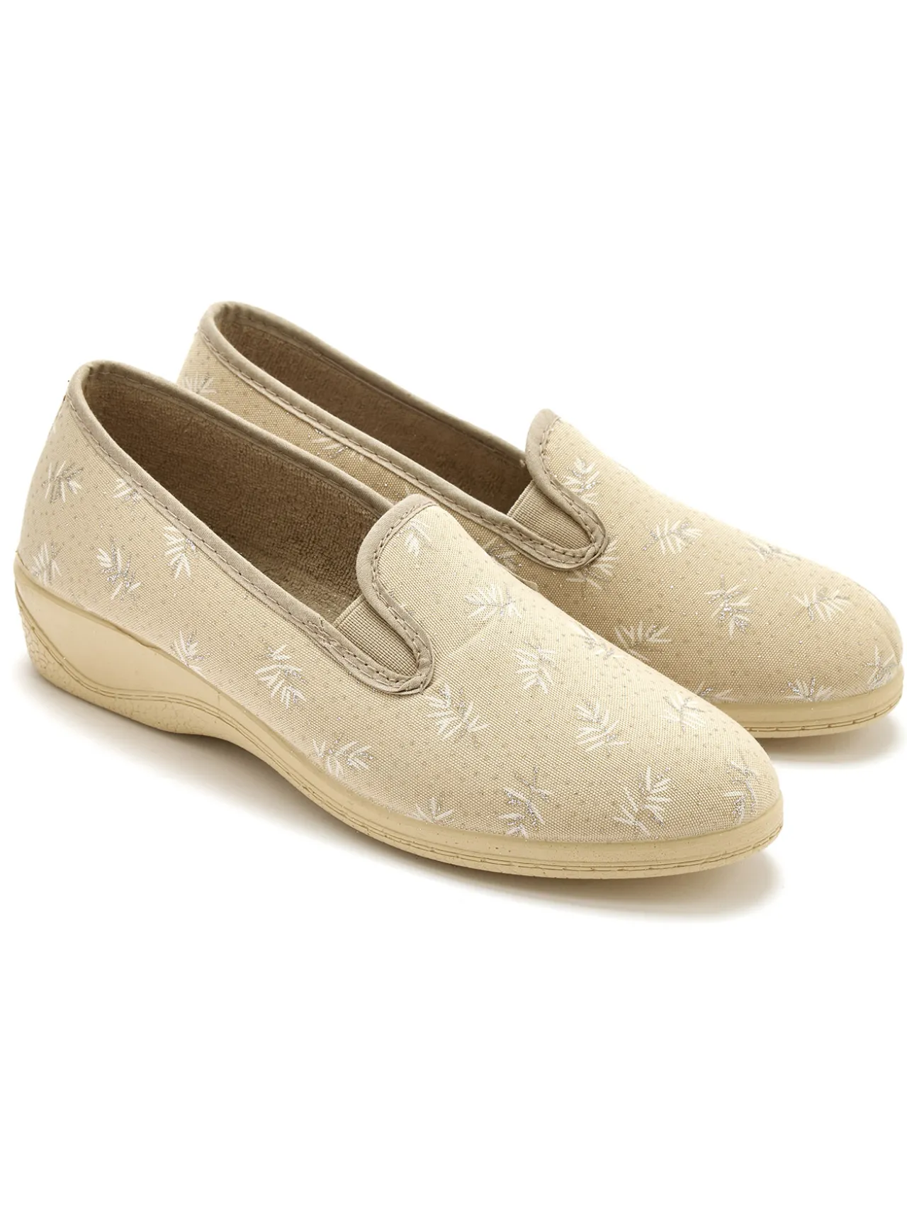 Faciles à enfiler, ces pantoufles sans-gêne grâce à leurs élastiques côtés. Leur dessus textile est personnalisé par un joli imprimé aux motifs feuilles stylisées.