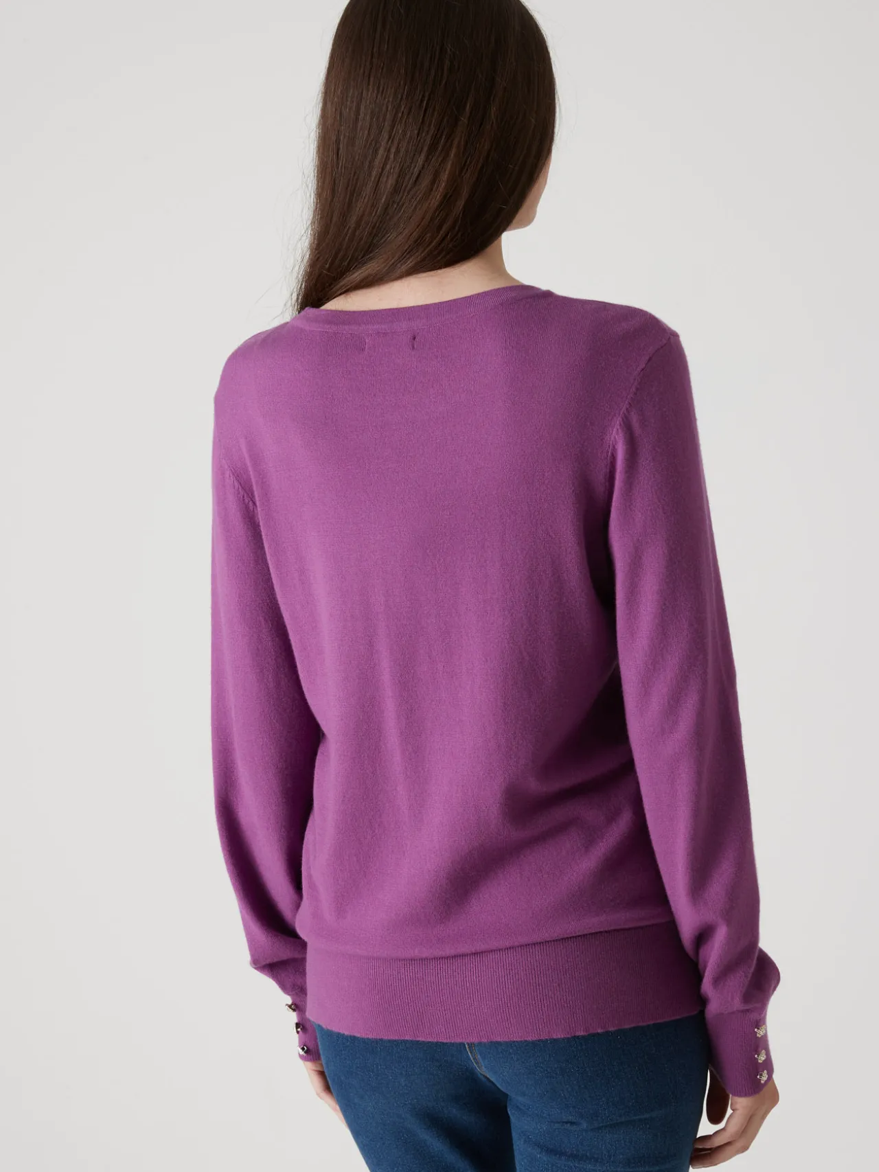 Le pull uni col rond est une valeur sûre du dressing. De jolis boutons-bijoux au bas des manches lui apportent du chic et de l’élégance ! Il vous sera facile d’associer ce pull classique à tous vos pantalons et jupes.