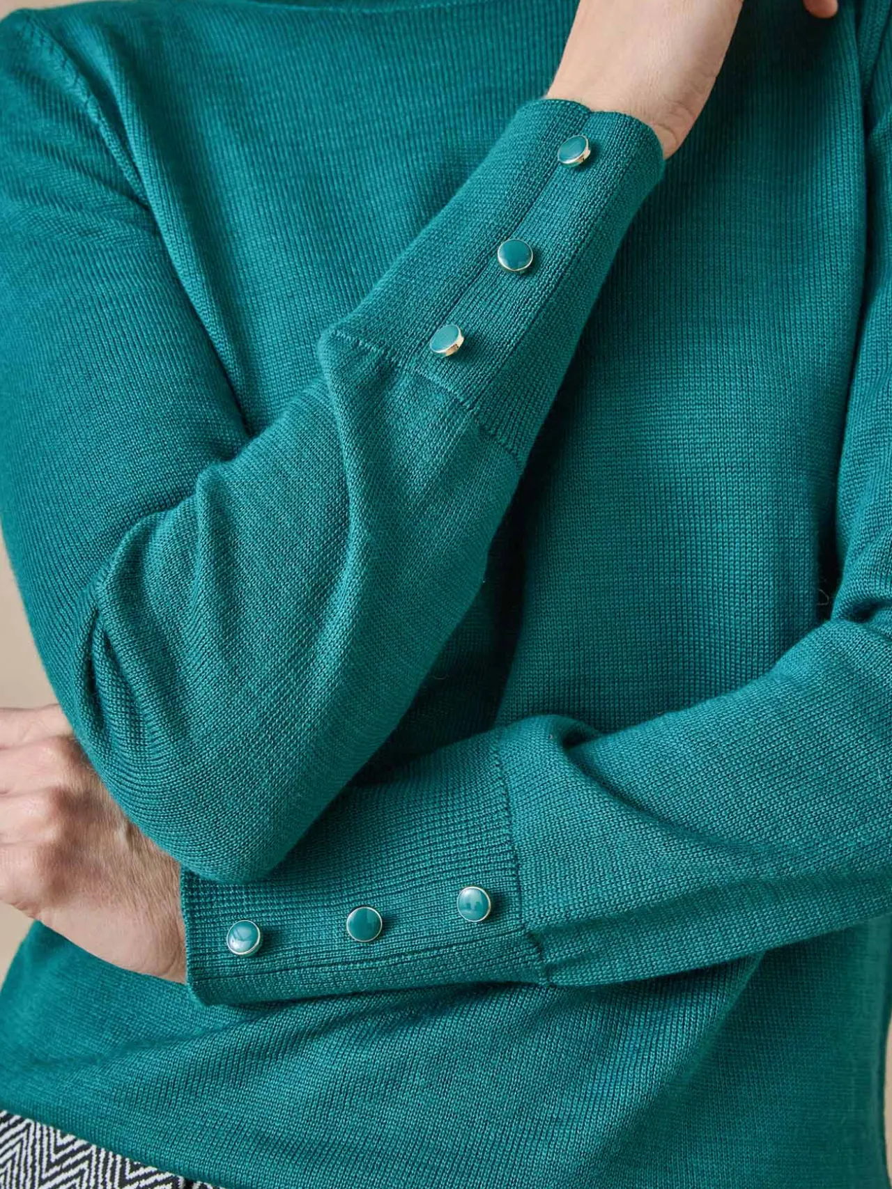 – Boutons sertis au bas des manches longues