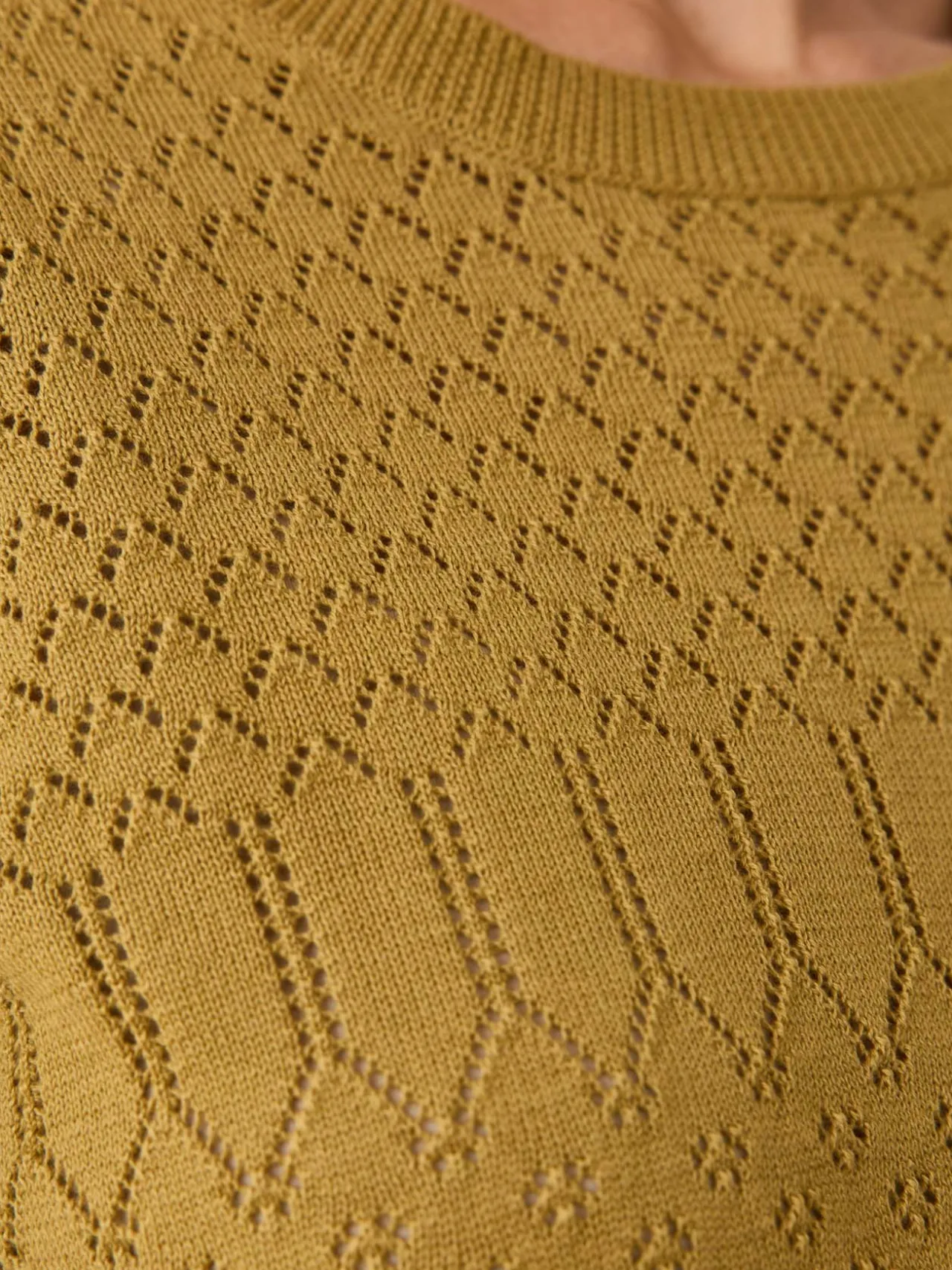 Encolure ronde. Jeu d’ajourés et de points fantaisie. Emmanchures semi-diminuées. Jolies manches au coude froncées. Finitions bords-côtes.